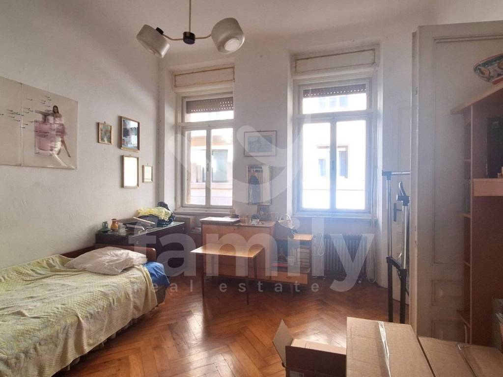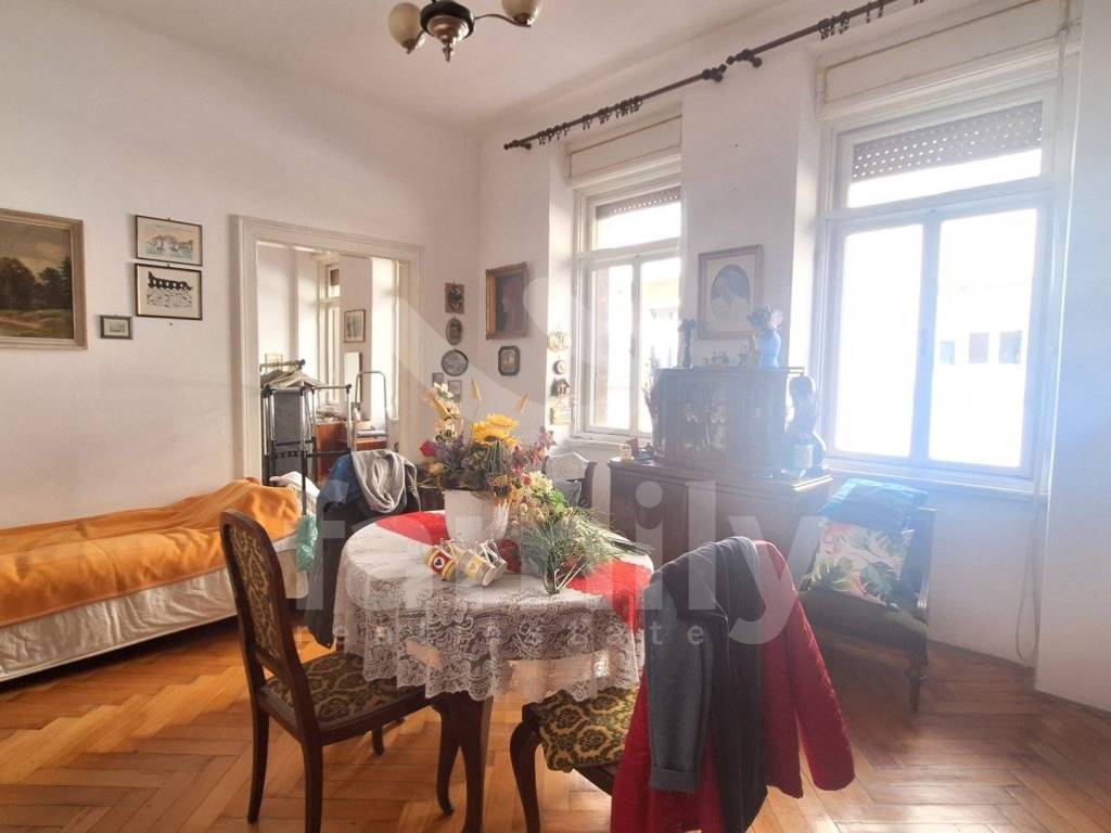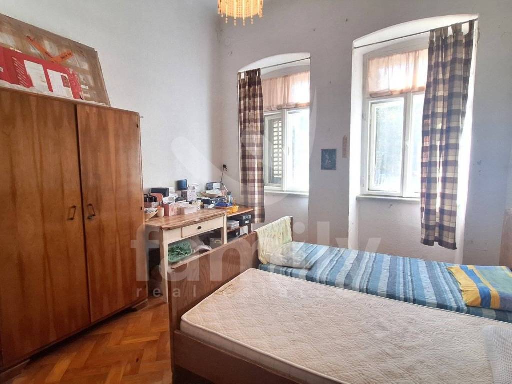 Right in the center of Pula is this very spacious family apartment of 102 m2 on the first floor of a residential building. The apartment consists of a spacious hallway, two comfortable bedrooms, a bright living room, a spacious bathroom equipped with a bathtub and a washing machine, a kitchen with a dining area and access to a loggia, as well as a guest toilet and a separate shower. The floors in the aforementioned property are covered with ceramics and high-quality parquet, wooden joinery has been installed and the heating is central with electricity and gas. The property is also equipped with one air conditioning unit. The interfloor structure is equipped with wooden beams and the property offers high ceilings, large living openings with a large influx of natural light, a garage that has been used for many years, as well as numerous partition walls, which offers the future owner the opportunity to decorate the property to their own taste. The electricity meters are separate.