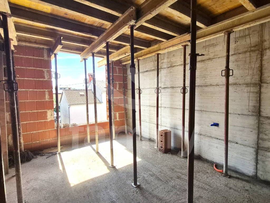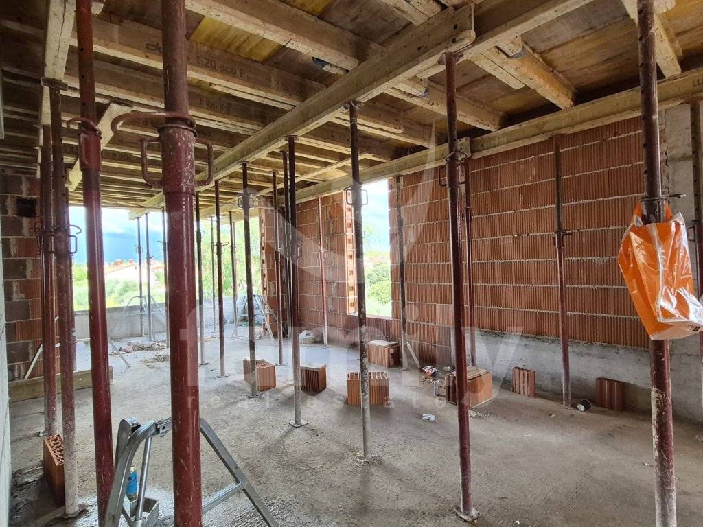 This penthouse of high-quality new construction by a proven investor with a total of 4 residential units is located in Štinjan. This apartment is located on the second floor and has an area of 110 m2 with one parking space. The apartment consists of an entrance hall, a very spacious and comfortable living room connected to the kitchen and dining room of the open space concept of 50 m2 in which a sliding glass wall with electric shutters will be installed through which access to the covered terrace will be provided, three comfortable bedrooms with extremely large living openings and two bathrooms. The building itself is equipped with reinforced load-bearing walls as well as a fire wall between the properties and 10 cm thick thermal insulation is planned. The heating and cooling system is planned to be regulated via an air conditioning unit and underfloor heating will be implemented throughout the building with thermostats in each room. The apartment will also be equipped with high-quality PVC joinery in anthracite color with triple-layer glass with 9 gas chambers.