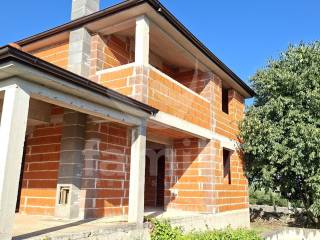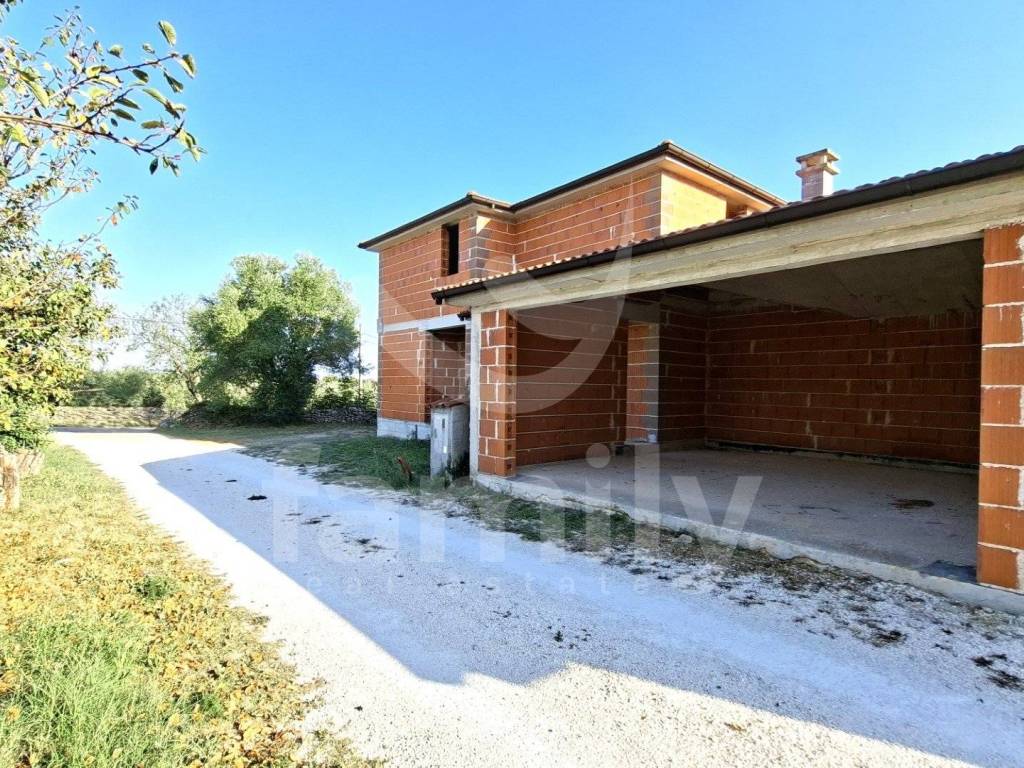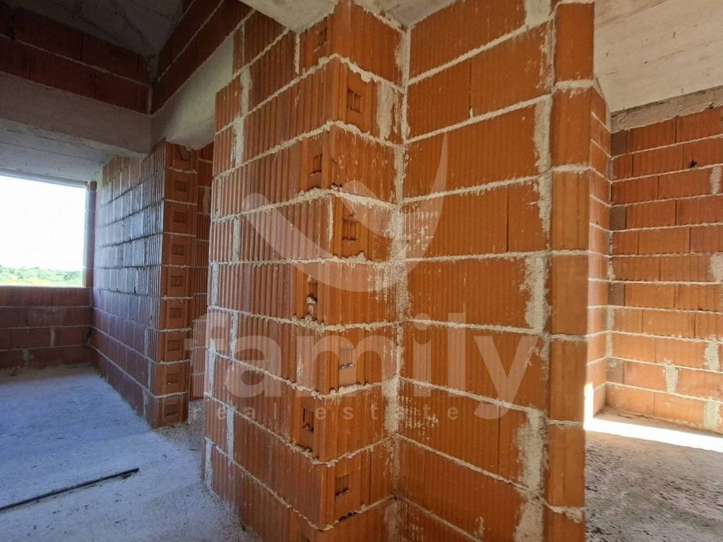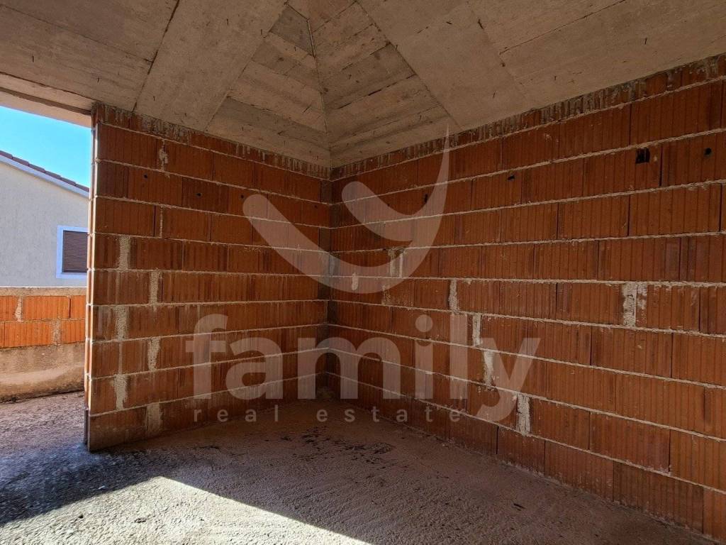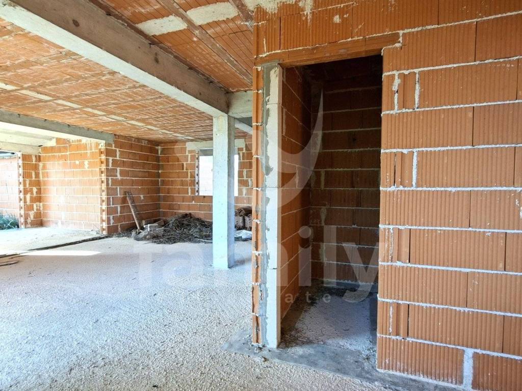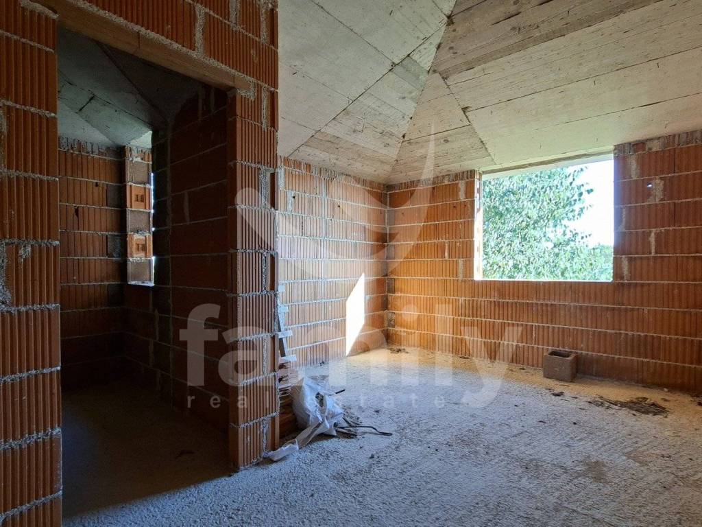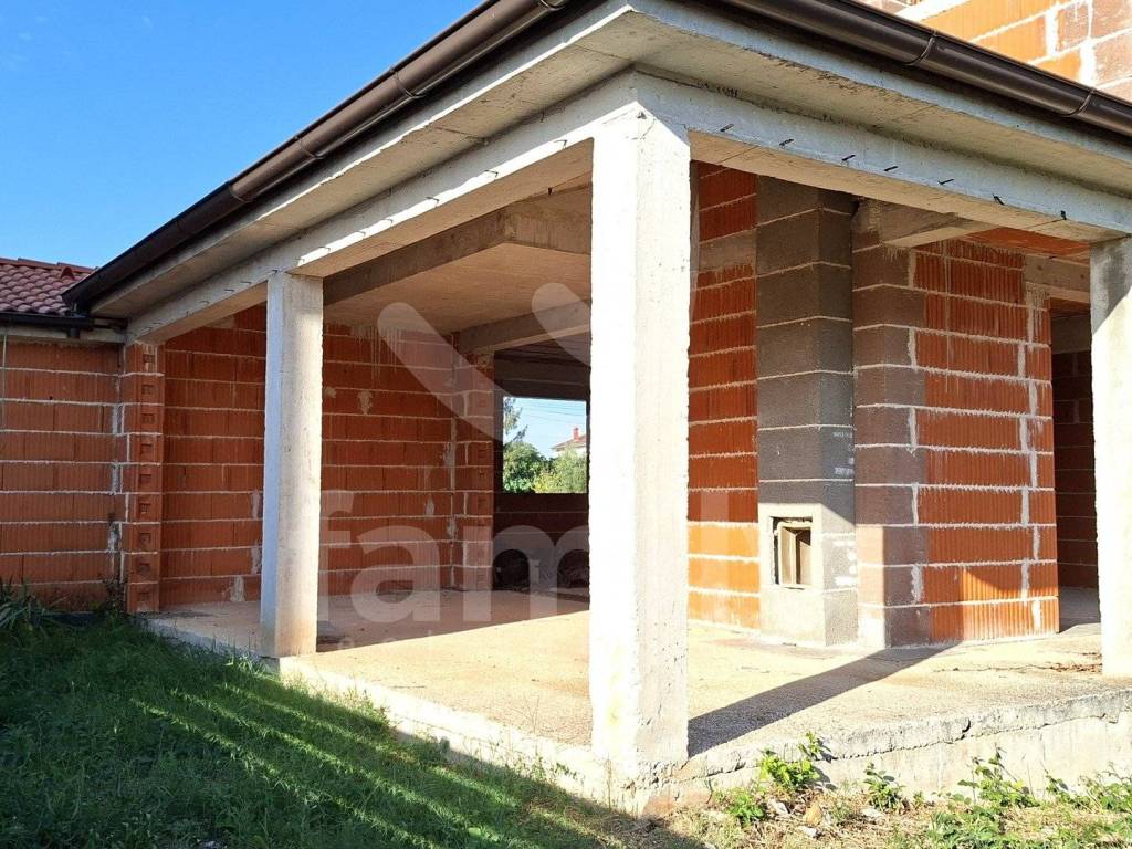 Within the municipality of Marčana, in a quiet place not far from Filipana, a comfortable family house in the unfinished stage is for sale. The house is spread over two floors and has a living area of 178 m2 with a garden of 394 m2. The ground floor of the property consists of an entrance hall, a spacious living room with access to a covered terrace, a kitchen connected to the dining room, as well as two storage rooms and a toilet. Internal concrete stairs leading to the first floor of the property consist of three bright bedrooms, one of which is en-suite, and the next two rooms have access to a spacious terrace and an extra bathroom. The garden also includes a swimming pool and a garage for two cars or a comfortable workshop.