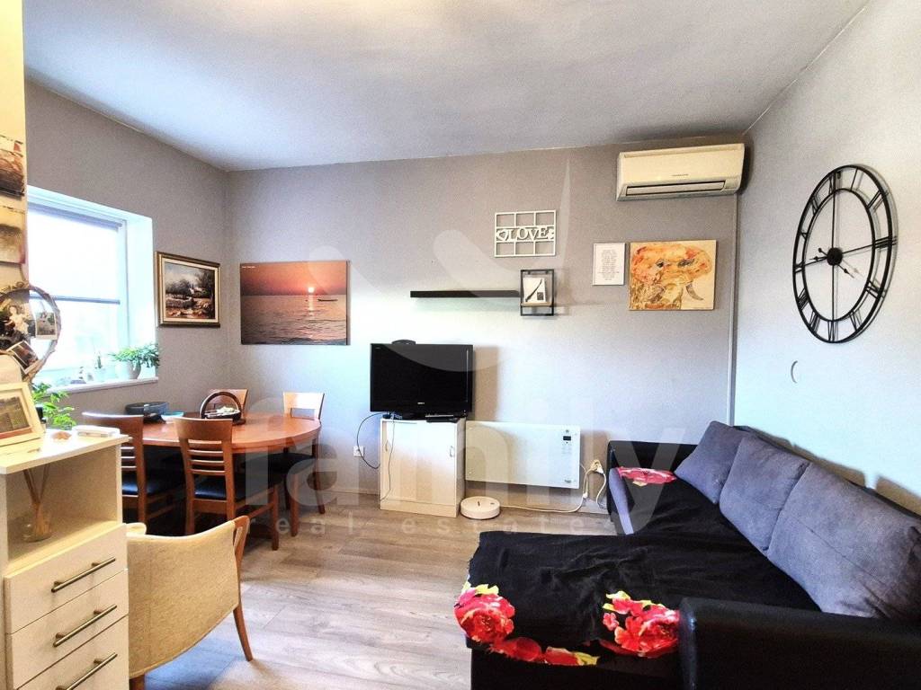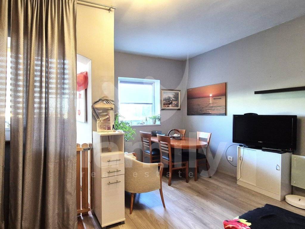 Right in the Peroj settlement is an apartment with a view of the sea and part of the Brijuni archipelago. The apartment is located in a residential building on the first floor and has an area of 42 m2. It consists of a hallway, bathroom, kitchen which is connected to the living room with access to a loggia which is illuminated with a view of the sea. The apartment is very bright and also has a bedroom with access to a small charming terrace which has a view of the sea and greenery and also has a balcony door. There is free parking available around the building and the back side where the apartment is is certainly quieter.