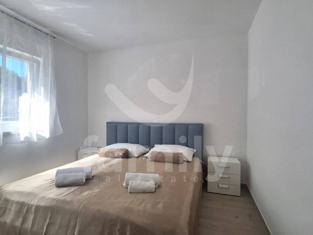 In a quiet part of Peroj, this well-equipped apartment of 64 m2 is located, located on the first floor of a building with a total of 10 residential units. The apartment consists of an entrance hall with a built-in shoe cabinet, a bright living room connected to the kitchen and dining room. The kitchen is equipped with a Gorenje induction hob, dishwasher, oven and self-filtering hood. The apartment also consists of two comfortable bedrooms, a modern bathroom with a walk-in shower, a boiler and prepared installations for a washing machine, and a loggia of approximately 6 m2. Heating and cooling are regulated by an air conditioning unit, while additional comfort is provided by electric underfloor heating. The entire property has PVC joinery with double glazing, seven gas chambers and a 10 cm thick thermal facade, which ensures excellent thermal and sound insulation. The floors are covered with high-quality ceramics. The apartment is sold fully furnished, including all appliances and one parking space.