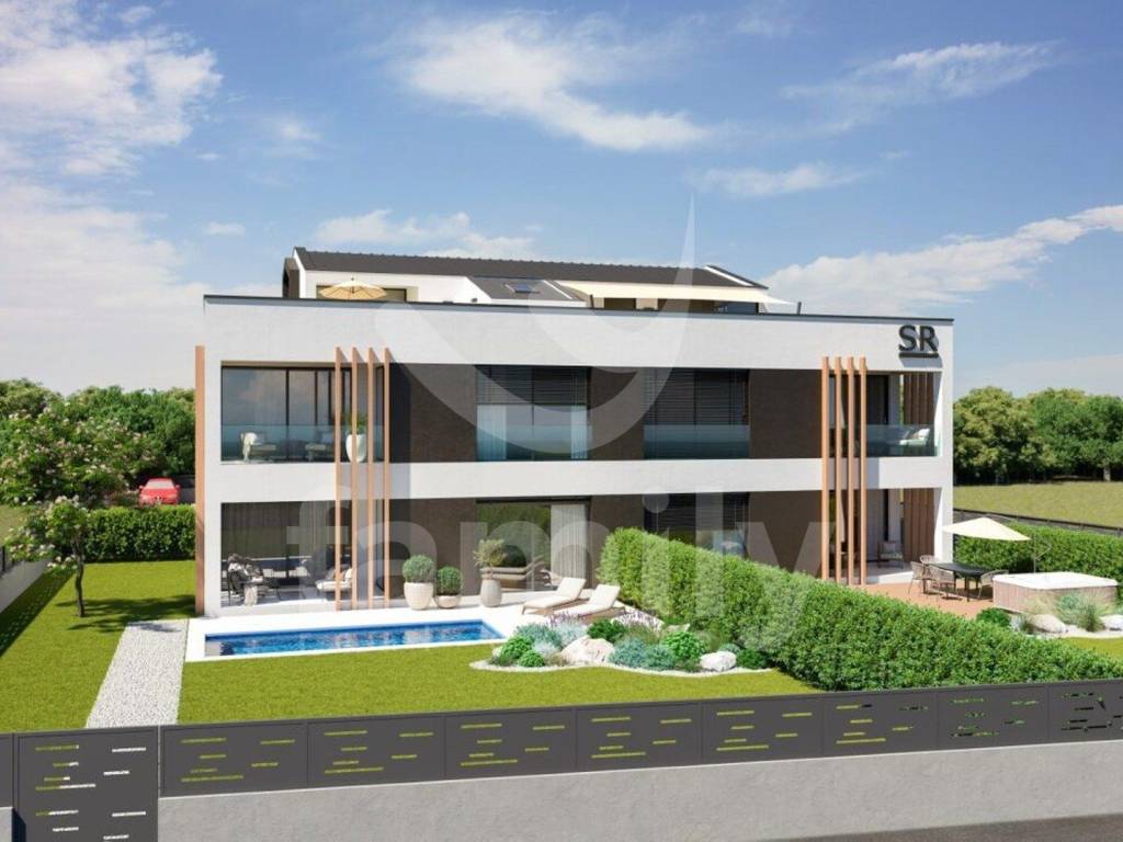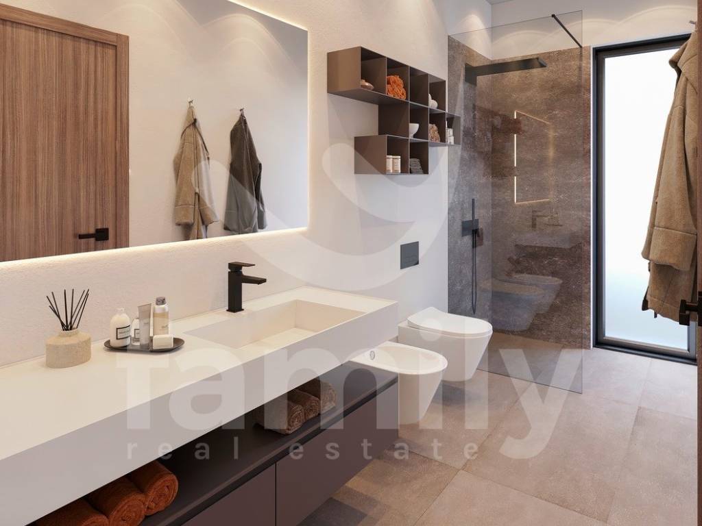 This spacious apartment of 143.3 m2, of which 91.3 m2 is residential, is located in an excellent and quiet location in Rovinj, in a smaller residential building under construction with a total of 6 apartments, with an area of 25.4 m2, a garage and two storage rooms, while the garden with a separate pedestrian entrance is 268 m2. This highly energy-efficient building will be built by the end of 2026, when it is planned to move in. The apartment will be located on the ground floor and will include two bedrooms, two bathrooms, a storage room or laundry/drying room and a heated pool of 21 m2. The apartment has two parking spaces, one in the garage and one uncovered, as well as a storage room within the building. The building will have an elevator, and the garage door and main access fence will be remote-controlled. Smart design and high-quality construction and equipment will enable the highest energy criteria to be met, and ALU three-layer glass walls from renowned manufacturers Schüco/Wicona/Cortizo will be installed, shading with electric motor control and a built-in anemometer for protection against weather conditions such as strong winds. The security of the entire building will be at an enviable level, and a video intercom with video surveillance, an entrance security and fire door to the apartment, and a security and fire alarm system with smoke detection are planned. This truly high-quality and luxurious property will be equipped with high-class bathroom furniture from the renowned Italian brand Idea Group, LED recessed spotlights 230 V for perfect basic lighting of all rooms, and the floors will be covered with ceramics from renowned Italian manufacturers or first-class parquet! The heating system will be via heat pumps and underfloor heating with a separate autonomous inverter air conditioning system for cooling and heating with the possibility of wi-fi remote control. During the design, everything was thought of and water softening and filtering systems will be installed, and there will also be the option of equipping the apartment with kitchens from DanKüchen, Record Cucine and The Cut, at preferential prices. The location is excellent, quiet, and yet not far from the supporting facilities and the center of Rovinj and is close to the beach at only 280 meters. The planned completion of the works is the end of 2026. The property is owned by the company and VAT is paid on the price.