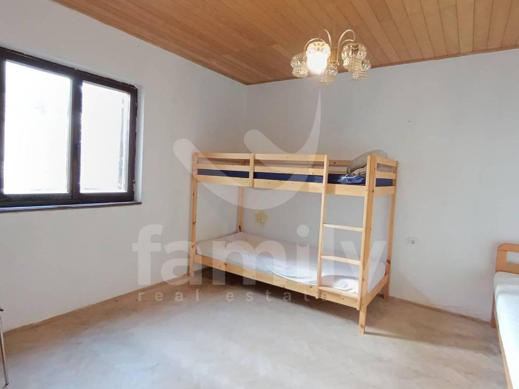 In Vodnjan, there is an apartment on the ground floor of a building consisting of two bedrooms, a living room, a kitchen, a pantry, a bathroom, a toilet, a hall and a hallway, with a total area of 73 m2. The apartment also has a storage room in the hallway of the building of 3m2. The building has an entrance to the southeast and northwest and its own parking lot separated from the road by a large stone wall.