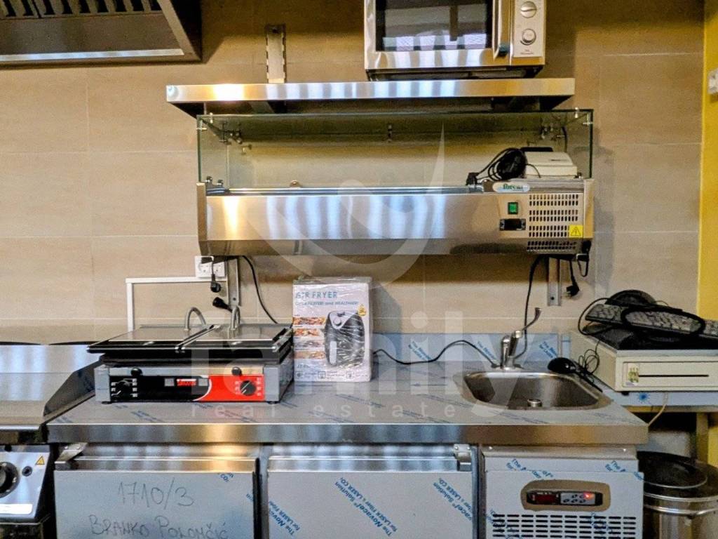 U samom centru Pule točnije u staroj jezgri nedaleko od pulskog Kaštela nalazi se ovaj poslovni prostor ugostiteljske namjene uređen za poslovanje caffe bara i brze hrane površine 90 m2. Prostor posjeduje ulaz sa ceste gdje je prizemlje tlocrtne površine 45 m2 sa terasom na prvome katu iste površine. Unutar prizemlja smjestio se kuhinjski dio, ostava, dva toaleta za goste i kupaonica za zaposlene. Posjeduje električnu struju, vodu te priključak na gradski plin u slučaju potrebe, a opremljen je PVC stolarijom, novom kuhinjom, šankom na vanjskoj terasi. Poslovni prostor se nalazi na zasebnoj katastarskoj čestici, upisan kao poslovna zgrada, s time da trenutno NE posjeduje uporabnu dozvolu te je pripremanje dokumentacije i ishodovanje u tijeku čiji je završetak moguć od strane sadašnjeg vlasnika uz nadoplatu cijene.