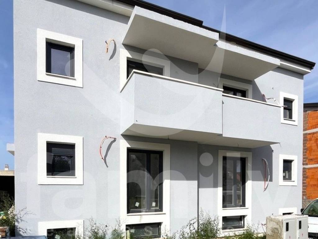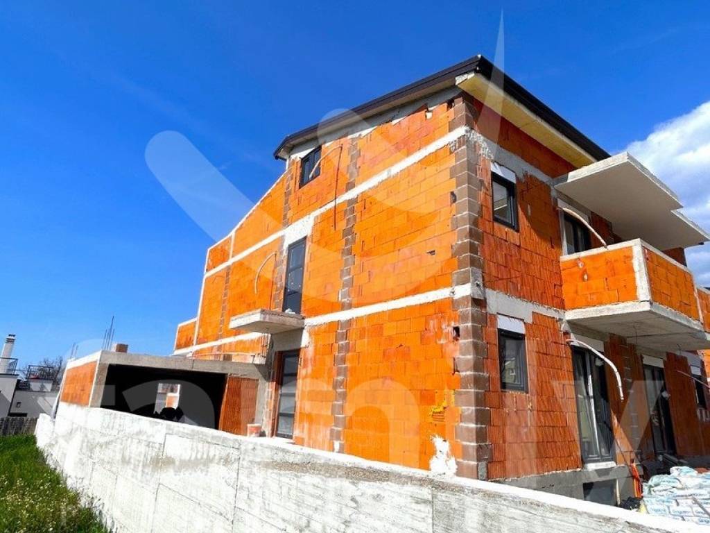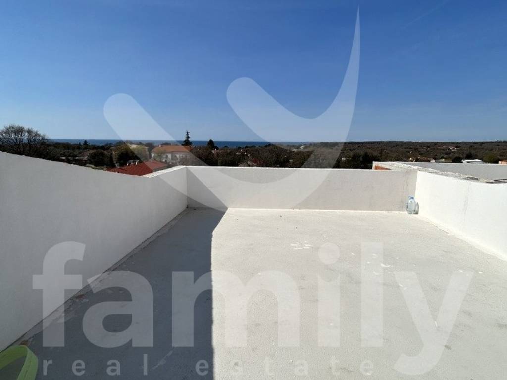 Only 350 meters from the center of Peroj and 650 meters from the sea is this spacious semi-detached house with a wonderful view of the sea. The house is spread over four floors and consists of a basement, upper ground floor, first floor and attic with a total gross area of 358 m2. One of the advantages of this building is certainly the large terraces that have a wonderful view of the sea on the west side. Every room, with the exception of the basement, has access to a private terrace with a view of the sea or greenery. In the courtyard of the house on the west side there is a swimming pool with a total area of 25 m2. The building has two parking spaces, one in the garage and one open parking space. The house is sold in the roh-bau phase with installed gray PVC carpentry and installed installation of the first phase of water and electricity, as well as plastered walls. For heating and cooling in each room, the first stage for the air conditioning units was laid and a chimney was prepared for the possible installation of a stove. An installation for solar panels on the roof has also been saved.