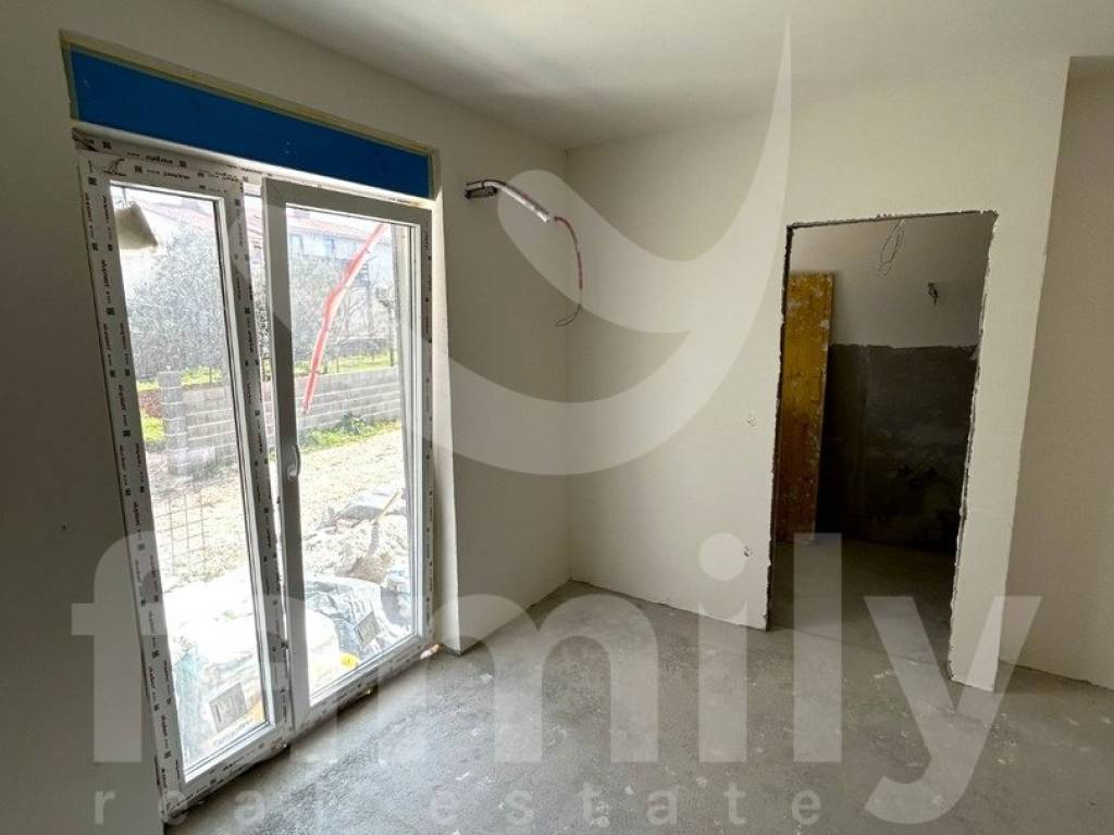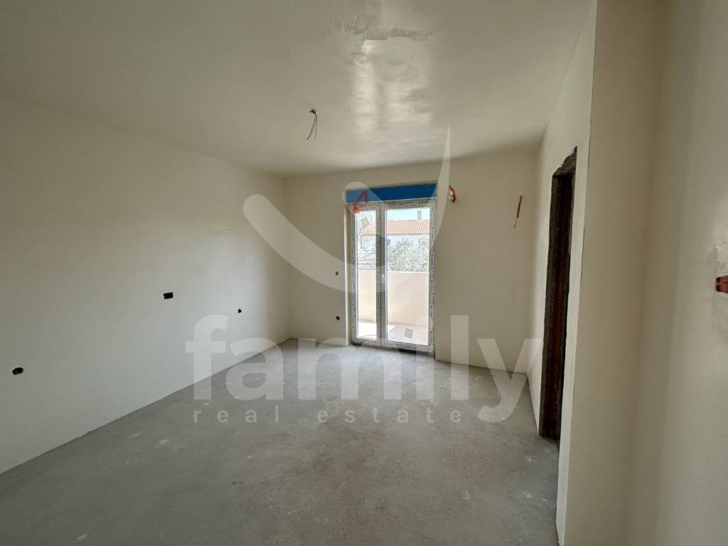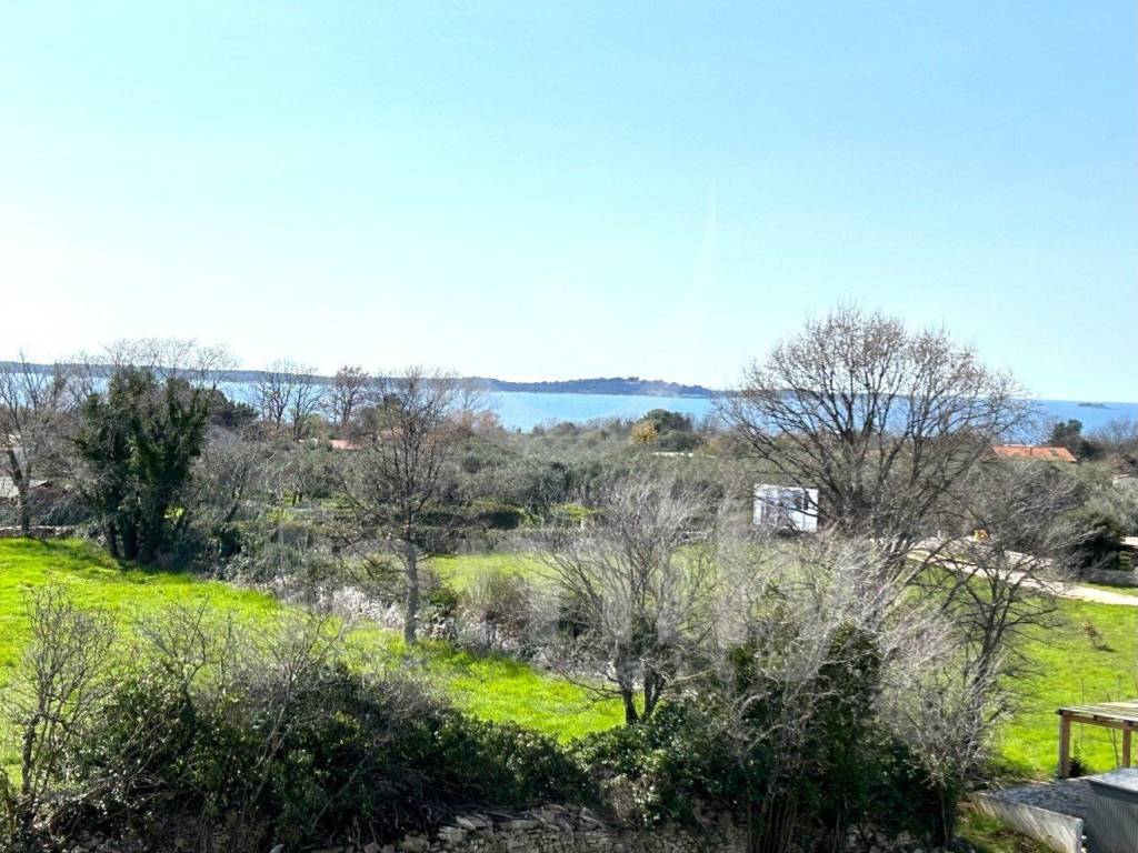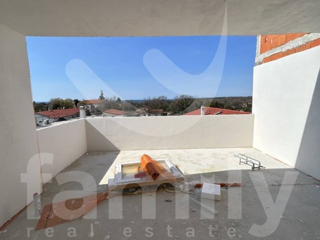 Only 350 meters from the center of Peroj and 650 meters from the sea is this semi-detached house with a wonderful sea view. The house is spread over four floors and consists of a basement, upper ground floor, first floor and attic with a total gross area of 716 m2. One of the advantages of this building is certainly the large terraces that have a wonderful view of the sea on the west side. Every room, with the exception of the basement, has access to a private terrace with a view of the sea or greenery. Both houses on the west side have a 25 m2 swimming pool. Each house has two parking spaces, one in the garage and one uncovered parking space. The semi-detached house is sold in the roh-bau stage with installed gray PVC carpentry and installed installation of the first stage of water and electricity and plastered walls. For heating and cooling in each room, the first stage for the air conditioning units was laid and a chimney was prepared for the possible installation of a stove. An installation for solar panels on the roof has also been saved.