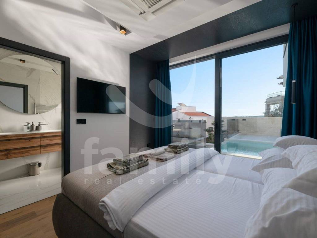 Right in Medulin, we present this beautiful luxury modern villa with an incredible sea view at a distance of 350 meters to the sea. The villa extends over 3 floors with a total living area of an impressive 400 m2 with a garden of 200 m2.