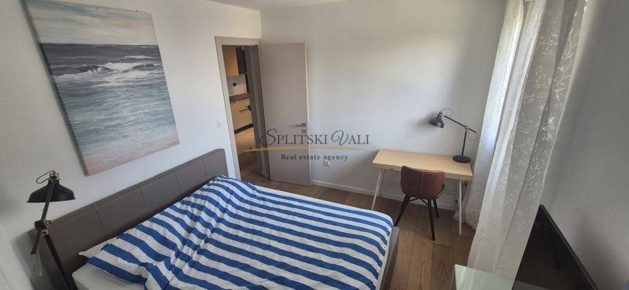 Posredujemo u najmu prekrasnog dvosobnog stana u Splitu - predio Žnjan. Stan se nalazi u novoj zgradi na 4. katu i zapadne je orijentacije. Površine 63 m2 stan se sastoji od hodnika, dvije kupaonice, dvije spavaće sobe i otvorenog koncepta kuhinje, blagovaonice i dnevnog boravka s izlazom na balkon. Stanu pripada i jedno garažno parkirno mjesto povezano liftom.