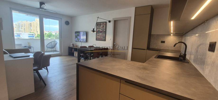 Stan je opremljen modernim i kvalitetnim namještajem i aparatima (bosch perilica suđa, pećnica, indukcijska ploča, frižider, napa), te se nalazi u blizini svih sadržaja potrebnih za miran život. U kuhinji i kupaonicama je ugrađeno podno grijanje na struju. U stanu su ugrađene dvije klima jedinice za grijanje/hlađenje te stropni ventilator. Perilica/sušilica u kupaonici, te električni bojler. Optički internet.