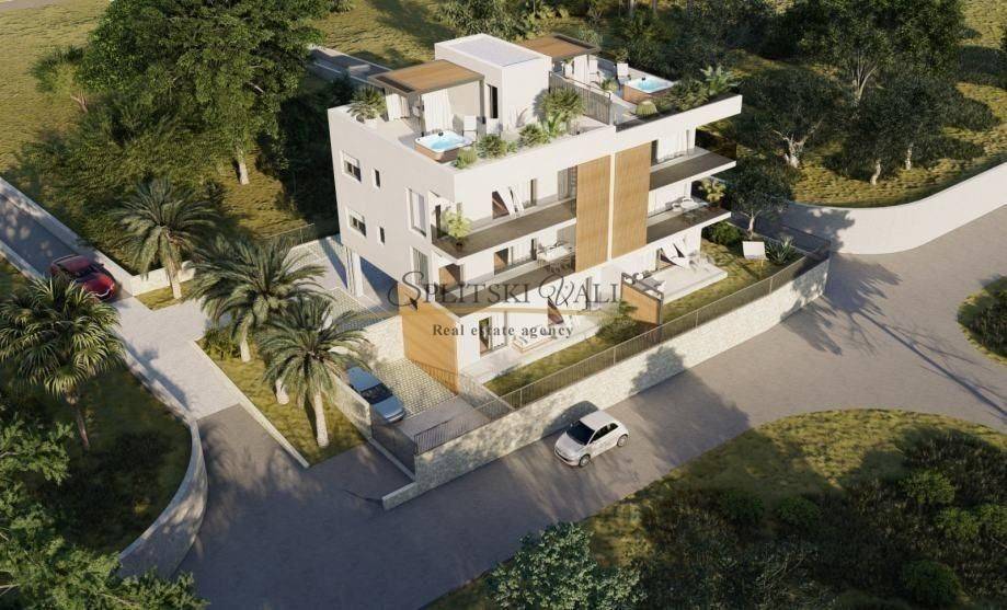 Posjedujemo u prodaji luksuznu novogradnju nadomak centra grada Trogira. Zgrada je razvijena u 3 etaže s ukupno 6 stanova s krovnim terasama i vrtom. Stan 5 se nalazi na drugom katu, podijeljen je na dvije etaže, a sastoji se od kupaonice, dvije spavaće sobe, kuhinje s blagovaonicom, te dnevnog boravka s izlazom na balkon, te nenatkrivene terase. Stanu pripadaju 3 parkirna mjesta. Zatvorena stambena površina iznosi 59 m2, a terasa je povšine 80 m2. Jugoistočna orijentacija. Planirani završetak gradnje je u prvoj polovici 2024 godine. Kupac plaća agencijsku proviziju. Za sve dodatne informacije ljubazno nazovite kontakt telefon 095 335 5405 (Barbara) , ili pitajte u uredu agencije.