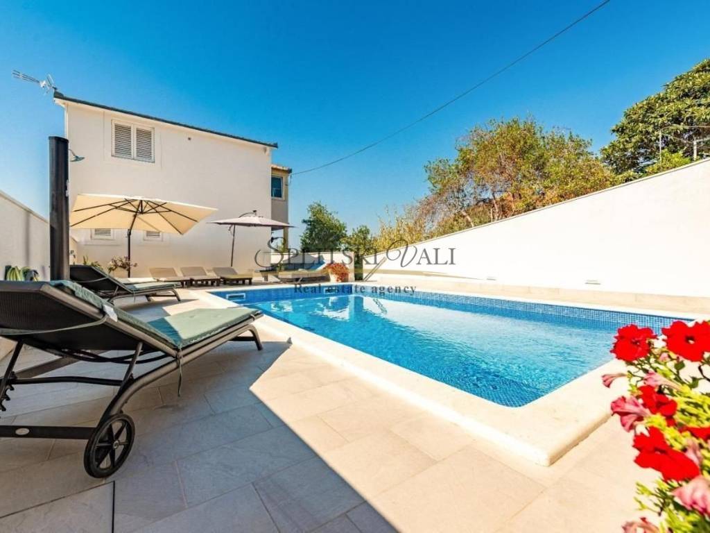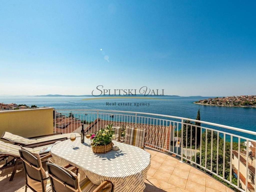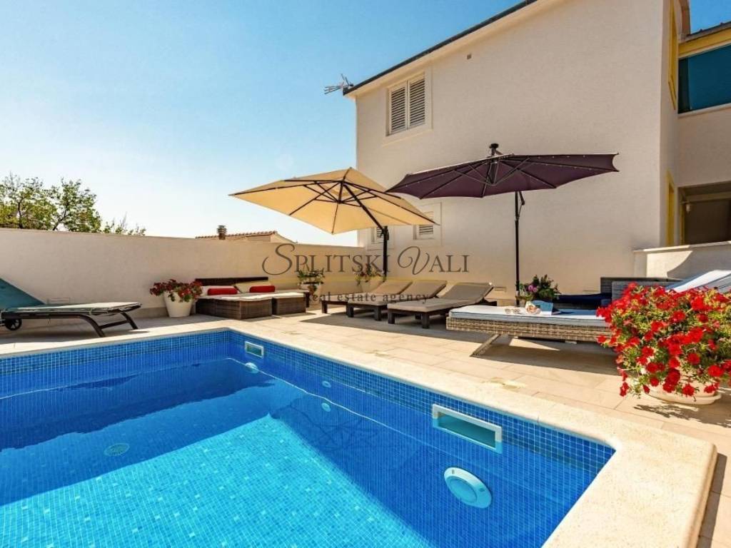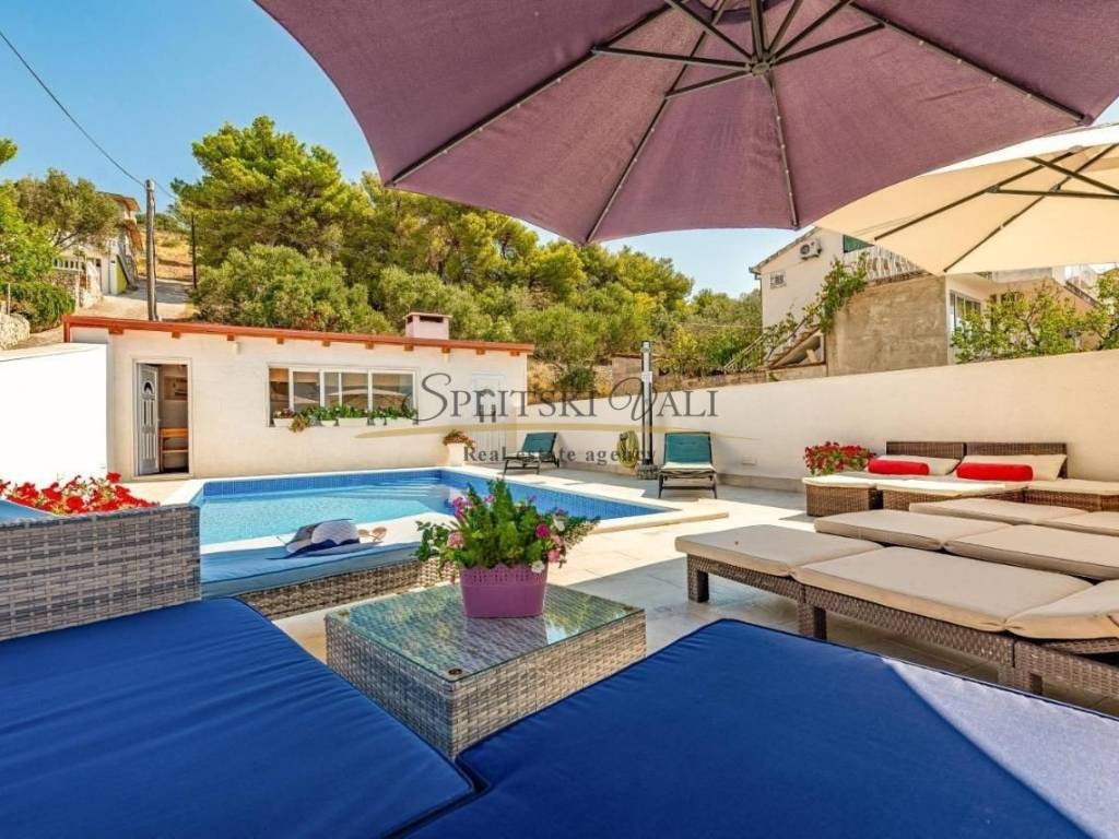 Posredujemo u prodaji vilu na Čiovu, Okrug gornji uvala Mavarcica 100m od mora! Vila je samostojeća i prostire se na 320m2, a površina okućnice iznosi 350m2. Sastoji se od prizemlja i 3 kata. U prizemlju se nalazi trosobni stan koji se prostire na 105m2 i 30m2 terase, a 1.,2.2 i 3. kat se prostiru na 60m2 s dvije sobe te se na svakom nalazi balkon od 25m2. U dvorištu u stražnjem dijelu kuće sa S orijentacije se nalazi apartman od 25m2 poviše kojeg se nalazi bazen, sunčalipte te konoba s WC-om od 40m2. Kuća u posjedu sa J orijentacije ima garaže za 4 parking mjesta. ( Uz kuću se nalazi gradivno zemljište od 350m2 koje je moguće vrlo povoljno kupiti uz kuću) Za razgled i sve detaljne informacije ljubazno molimo nazvati na broj 095 3355 405 Barbara Kupac plaća agencijsku proviziju. Razgled nekretnine moguć je isklučivo uz potpisani ugovor o posredovanju, a što je u skladu sa Zakonom i o zaštiti podatala i zakonom o posredovanju i prometu nekretninama.