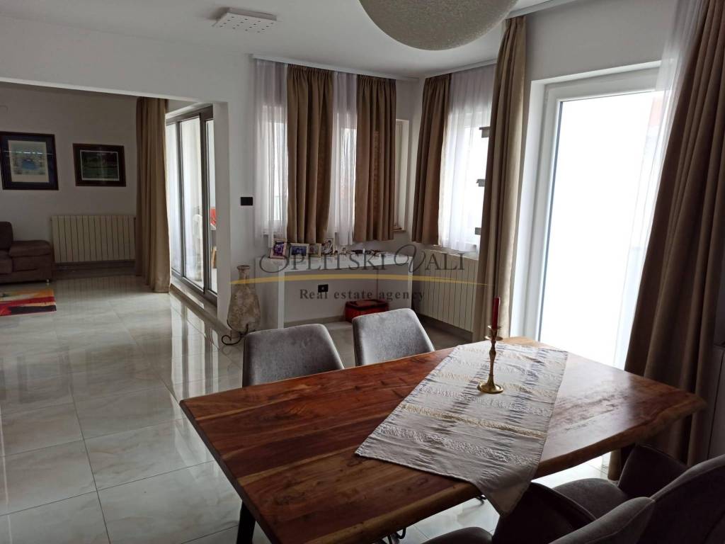 U ponudi imamo izvanrednu nekretninu luksuzan dvoetažni stan smješten na mirnoj i atraktivnoj lokaciji, s panoramskim pogledom na more i grad. Savršen spoj modernog dizajna, funkcionalnosti i elegancije.