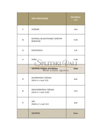 Stan 2 nalazi se na visini prizemlja te se prostire na 53.64m2 netto površine, 39.85m2 unutarnje površine.