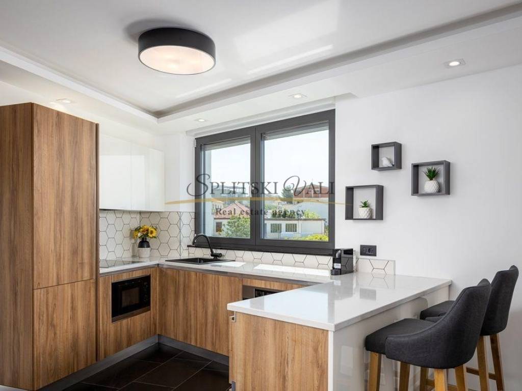 Stan se prostire na 75m2 i sastoji se od kuhinje s blagovaonom, dnevnog boravka, dvije spavaće sobe, dva kupatila i balkona s prekrasnim, otvorenim pogledom na more.