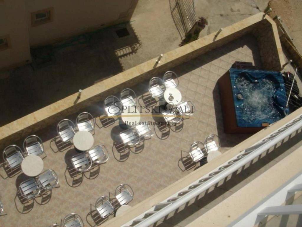 Ukupna korisna površina: 949,73 m2 (uključujući 727,35 m2 unutrašnje + 222,38 m2 balkona), garaža 34,24 m2, poslovni prostor 30,42 m2, restoran 135,35 m2 + vanjska terasa (nije mjereno), apartman za odmor 132,81 m2 + 38,57 m2 balkon, 1. kat sa 7 soba 131,18 m2 + 61,27 m2 balkona, 2. kat sa 7 soba 131,08 m2 + 61,27 m2 balkona, 3. kat sa 7 soba 132,27 m2 + 61,27 m2 balkona, okućnica 497 m2. Godina izgradnje: 1999./2000.