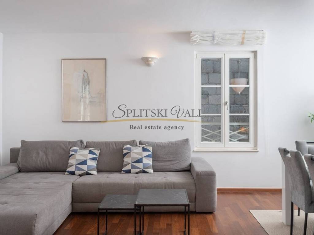Posredujemo u najmu prekrasnog trosobnog stana u centru Splita- predio Šperun. Smješten u novoj zgradi s liftom, ovaj se stan nalazi na drugom katu i ima 94 m2. Ima prostrani dnevni boravak, potpuno opremljenu kuhinju, 3 spavaće sobe, 1 kupaonicu s podnim grijanjem i 1 WC. Spavaće sobe i dnevni boravak imaju klima-uređaj, a brzi Wi-Fi dostupan je u cijelom stanu.