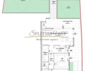 Sastoji se od dvije prostrane spavaće sobe, impozantnog open-space dnevnog boravka s kuhinjom i blagovaonicom, moderne kupaonice te zasebnog WC-a. Iz dnevnog boravka izlazi se direktno na prostranu terasu.