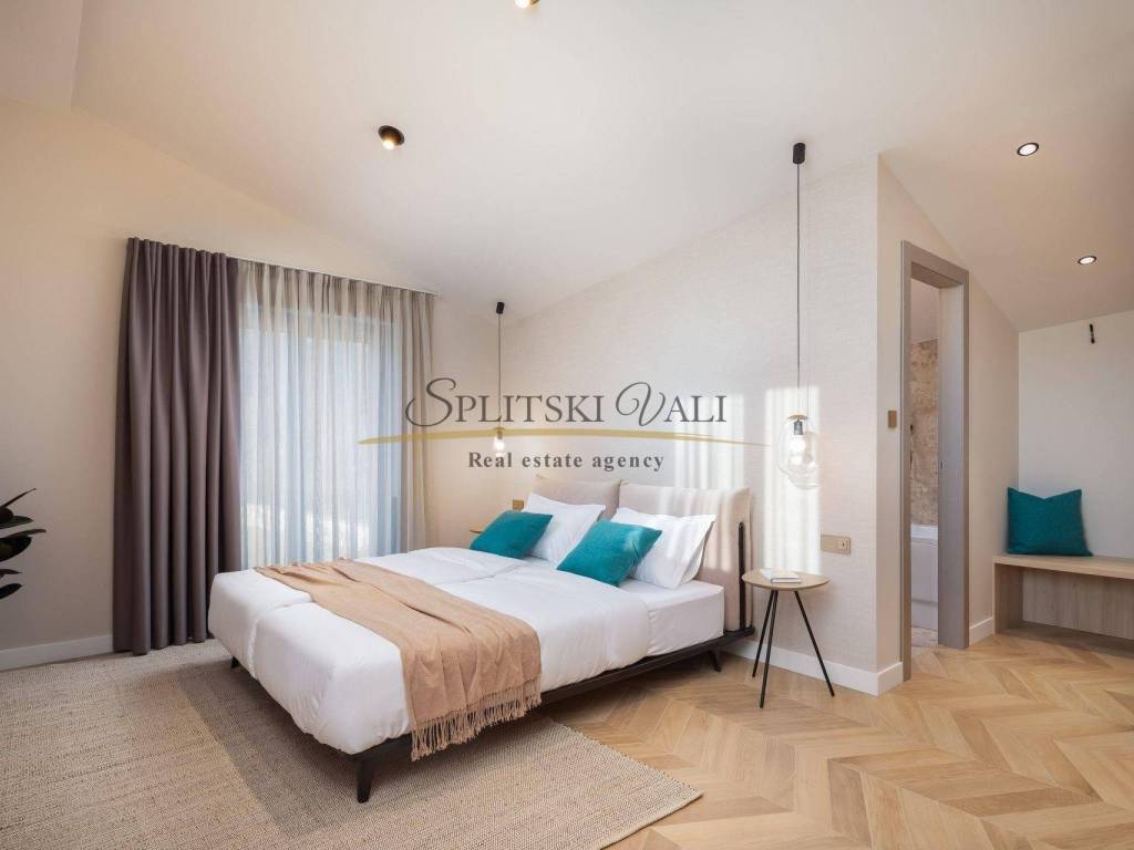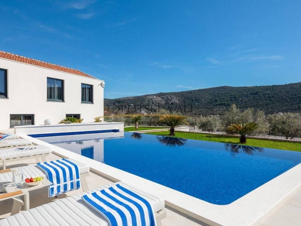 Posredujemo u prodaji ekskluzivne vile smještene na parceli od 7000 m. Stambena površina vile iznosi 310 m, a prostire se na dvije etaže. Donja etaža sadrži open space koncept koji uključuje dnevni boravak, blagovaonicu i kuhinju s vrhunskim uređajima. Također, na ovoj etaži nalazi se gostinjski WC. Velike staklene stijene omogućuju obilje prirodnog svjetla i povezanost s vanjskim prostorom. Na katu vile smještene su četiri spavaće sobe, svaka s vlastitom kupaonicom. Vanjski prostor uključuje infinity bazen s hidromasažom, uz bazen nalazi se i natkrivena vanjska blagovaonica i lounge kutak te uređene zelene površine i masline. U sklopu vile nalazi se garaža te vanjska 4 parking mjesta. Vila je opremljena sustavom grijanja i hlađenja, modernim namještajem i najnovijim kućanskim aparatima. Nekretnina se nalazi u blizini svih urabnih sadržaja i plaža ( udaljenost : 1km ). Agencijska provizija iznosi 3% + PDV. Za dodatne informacije i dogovor o razgledavanju, kontaktirajte nas. Petra - 099 165 5551