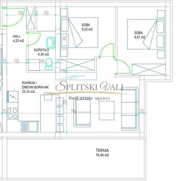 Stan će se sastojati od ulaznog prostora, prostranog open space dnevnog boravka s kuhinjom i blagovaonicom, dvije spavaće sobe te kupaonice. Iz dnevnog boravka predviđen je izlaz na terasu s koje će se pružati prekrasan pogled na more. Površina stana iznosi 50,45m2+ terasa 15,44m2.
