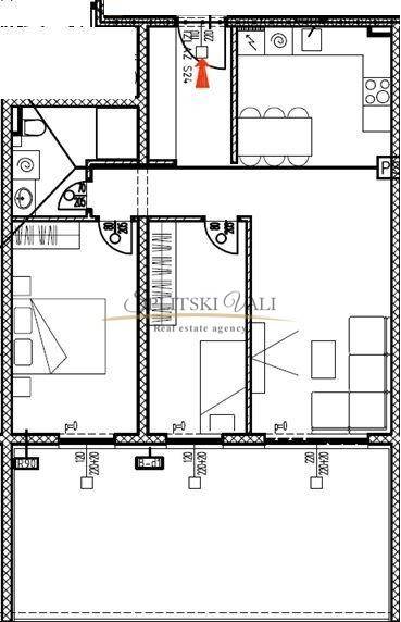Stan se sastoji od dvije sobe, otvorenog prostora kuhinje s blagavaonicom,kupaonice s wc-om, hodnikom te terasom.