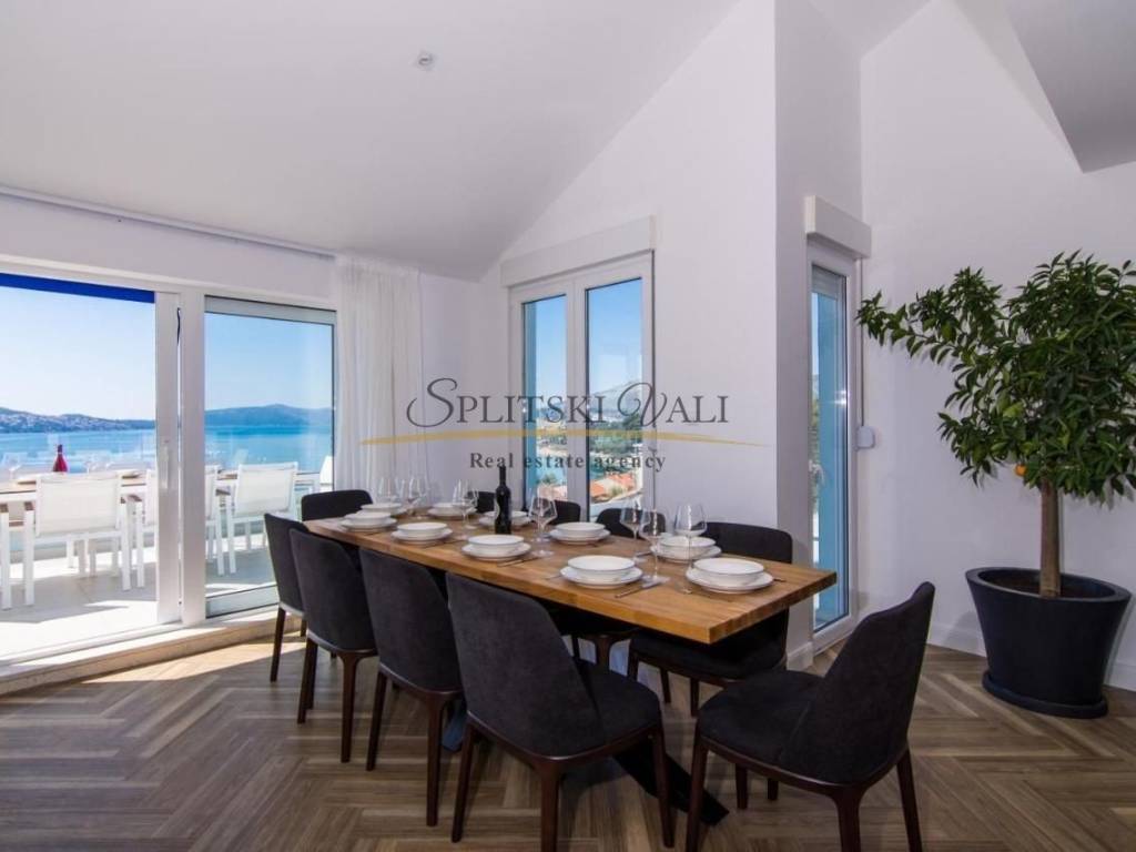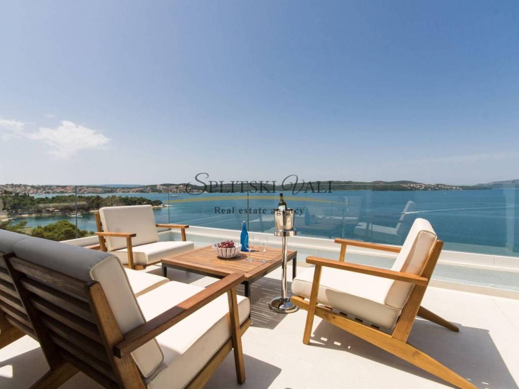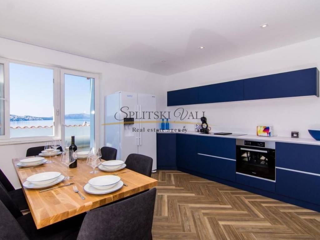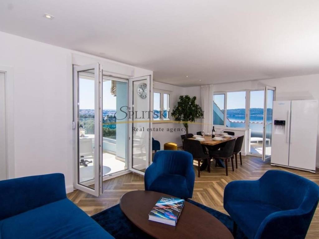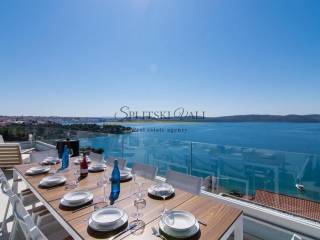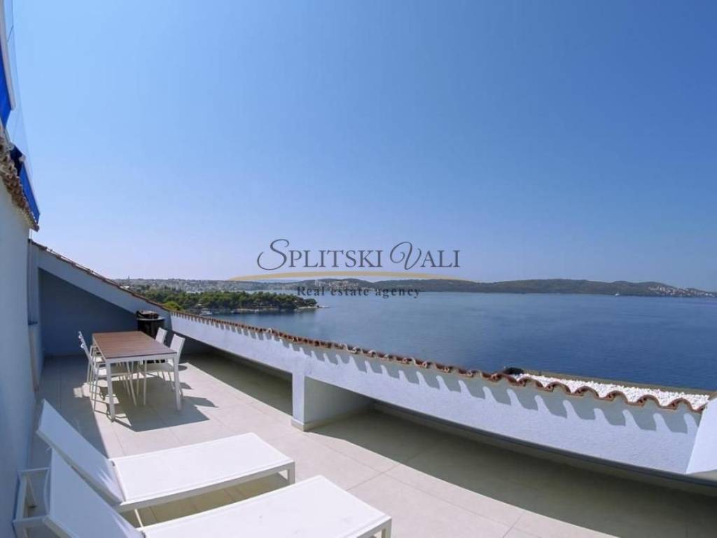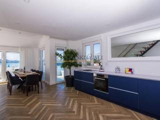 Na izvanrednoj lokaciji, 50 metara od mora, nudi se ekskluzivni dvoetažni penthouse ukupne površine 185,83 m, s privatnom terasom i izravnim, otvorenim pogledom na more.