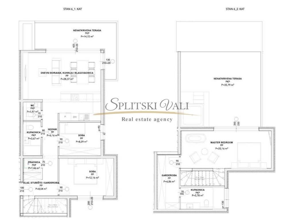 Na prodaju dvoetažni stan vrhunske kvalitete u mirnom dijelu Čiova, Okrug Donji, samo 80 m od plaže. Prva etaža obuhvaća open-space kuhinju s dnevnim boravkom i blagovaonicom, dvije spavaće sobe, kupaonicu, mali wc te praonicu i nenatkrivenu terasu. Iz dnevnog boravka, izlazi se na terasu s neometanim pogledom na more. Unutarnje stepenište vodi na drugu etažu gdje se nalazi master spavaća soba s vlastitom kupaonicom, garderobom i prostranom terasom sa zidanim jacuzzijem. Stan ima podno grijanje u kupaonicama, video nadzor i vanjsko parkirno mjesto koje je ukuljučeno u cijenu. Završetak radova: 2026 godina. Razgled nekretnine moguć je isključivo uz prethodno potpisan posrednički ugovor, sukladno Zakonu o prometu nekretninama. Agencijska provizija iznosi 2%+PDV. Kontaktirajte nas za više informacija! Petra- 099 165 5551