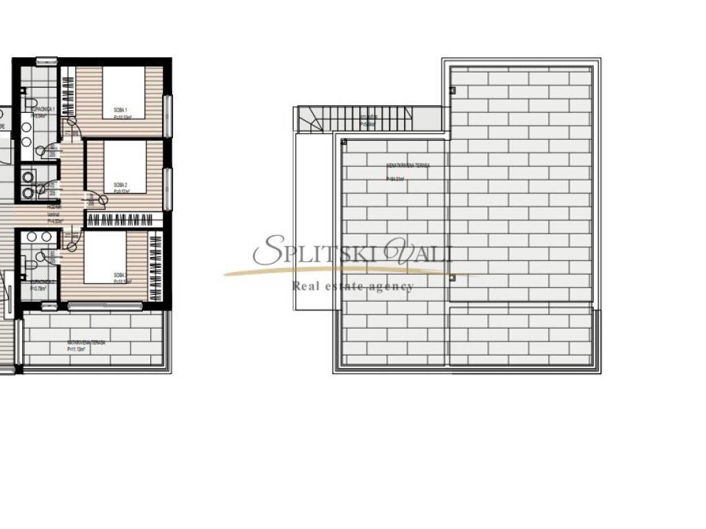 Na prodaju je moderan penthouse smješten na gornjoj etaži nove stambene zgrade u Okrugu Gornjem. Stan se ističe suvremenim rasporedom, prostranošću i luksuznim vanjskim prostorima, među kojima se posebno izdvaja privatna krovna terasa površine 94 m s mogućnošću uređenja jacuzzija, ljetne kuhinje, sunčališta ili lounge zone s prekrasnim pogledom na more.