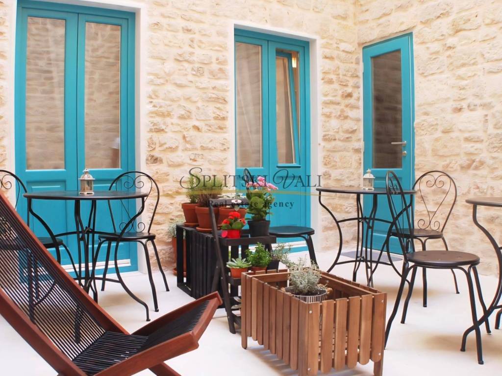Posredujemo u prodaji apartmanske kuće smještene u samom srcu Šibenika. Sastoji se od četiri studio apartmana, koji sadrže dnevni prostor s kuhinjom i krevetom te kupaonicu, ukupna površina oko 110m2. Izgrađen je od temelja 2017. godine-sve su instalacije (električne, vodovodne, grijanje/klimatizacija) moderne i potpuno nove te posjeduje i uporabnu dozvolu (nije rekonstrukcija). Apartmani već godinama posluju u turističkom najmu s izvrsnim rezultatima, što ih čini pouzdanom i atraktivnom investicijom. Za sve dodatne informacije molimo da nam se javite na broj +385991600440 (Maja). Kupac plaća agencijsku proviziju. Razgled nekretnine moguć je isključivo uz potpisani Ugovor o posredovanju, a što je u skladu sa Zakonom o zaštiti podataka i Zakonom o posredovanju i prometu nekretninama.