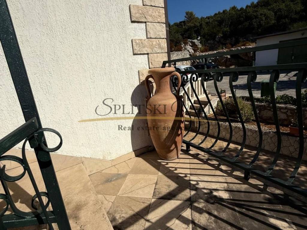 Na prodaju apartmanska kuća u Marini, smještena na parceli od 2.000 m. Kuća ima ukupno 200 m stambene površine i sastoji se od jednog studio apartmana te tri zasebna apartmana, svaki s vlastitim ulazom. Ispred kuće se nalazi deset parkirnih mjesta, veliko dvorište a na raspolaganju je i velika garaža površine 80 m.