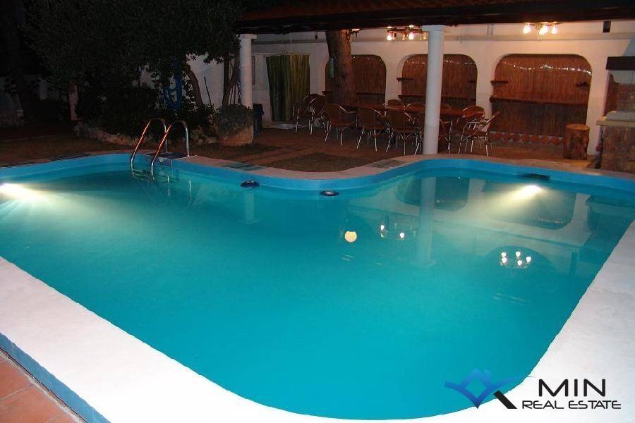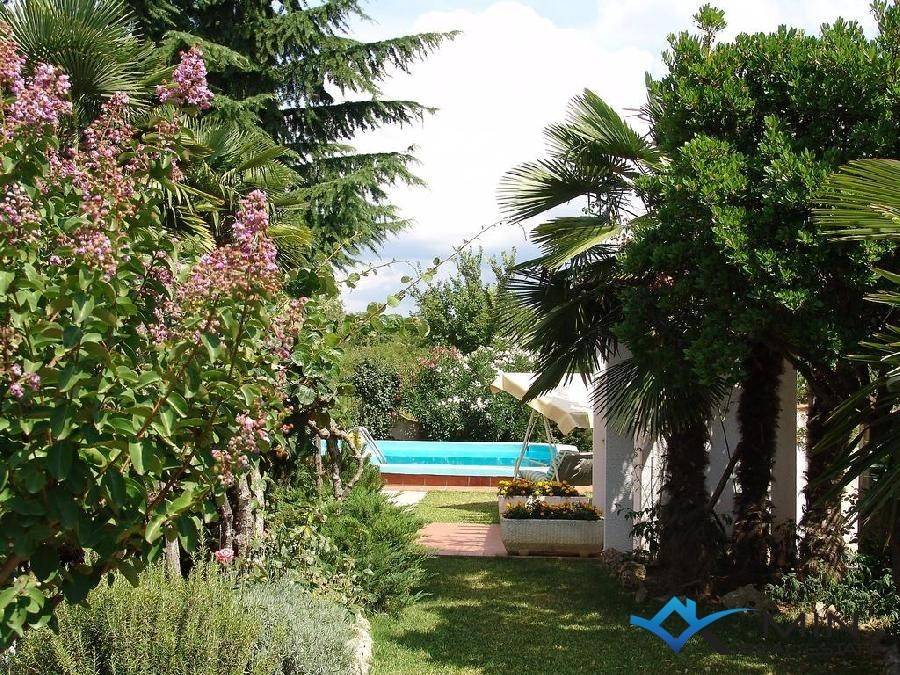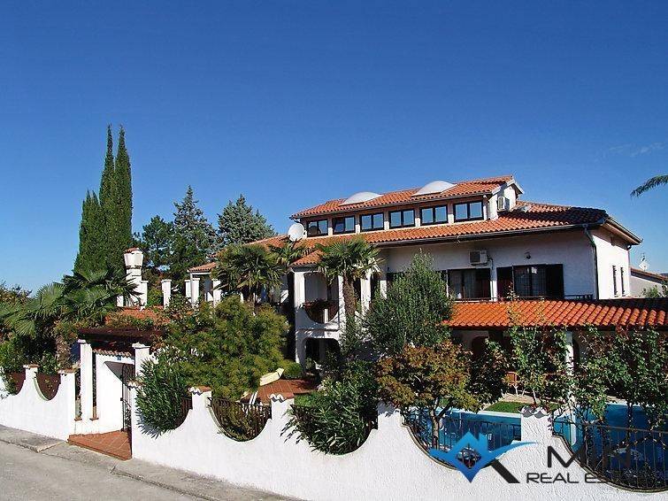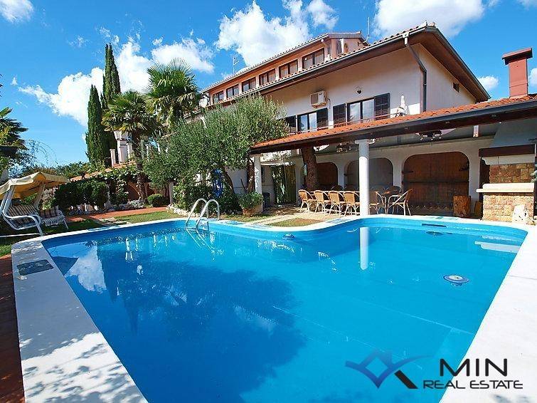 House with swimming pool is for sale in a quiet location in Plovanija. The house has a beautiful garden with various plants, flowers and garden furniture. In the garden there is a swimming pool with an outdoor shower. The house consists of ground floor, attic and mansard. On the ground floor there is a business space of 320 m2 and an apartment of 75.87 m2. In the apartment there is living room, bedroom, kitchen, dining room, bathroom, hallway and storeroom. On the first floor there is a separate entrance to a house with four bedrooms, two bathrooms, a terrace overlooking the pool, two dining rooms, two storage rooms, living room and a workout room. The attic consists of a living room, kitchen, dining room, bathroom, two bedrooms and a hallway. On the attic there is a sauna occa 5 m2. The total area of the mansard and the floor is 369.82 m2. Distance from the sea and beach is 4000 m, restaurant and supermarket 500 m. The border is 1600 m away and Portorož is 7 km away. Distance from Umag is 9 km, Golf Course and the Kempinski Luxury Complex are 9 km away.