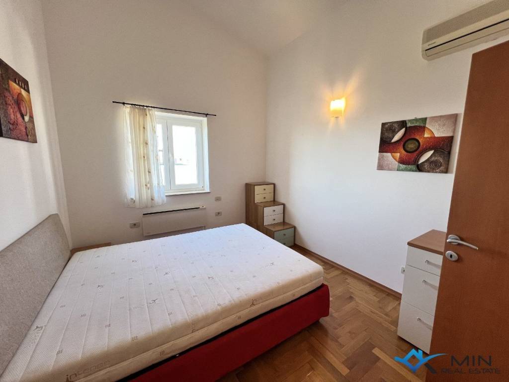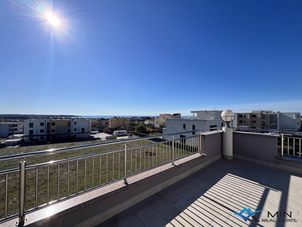 For sale is a spacious apartment located on the 2nd floor of a residential building. The apartment is located in a quiet location 1,500 m from the city center and 1,200 m from the sea and a beautiful beach. The apartment has a total square footage of 178 m2, and after calculating all coefficients (balcony, garage) it has 136.95 m2. The apartment consists of an entrance hall, a toilet, a bathroom, 3 bedrooms, a kitchen and an open space where there is a living room with access to a large balcony of 52 m2. The balcony offers a panoramic view of the sea. The apartment has a garage of 18.70 m2 located on the ground floor of the building and 1 parking space. Heating and cooling in the apartment is via air conditioning, floor heating in the living room and a pellet stove. The apartment can be used for residential or tourist purposes.