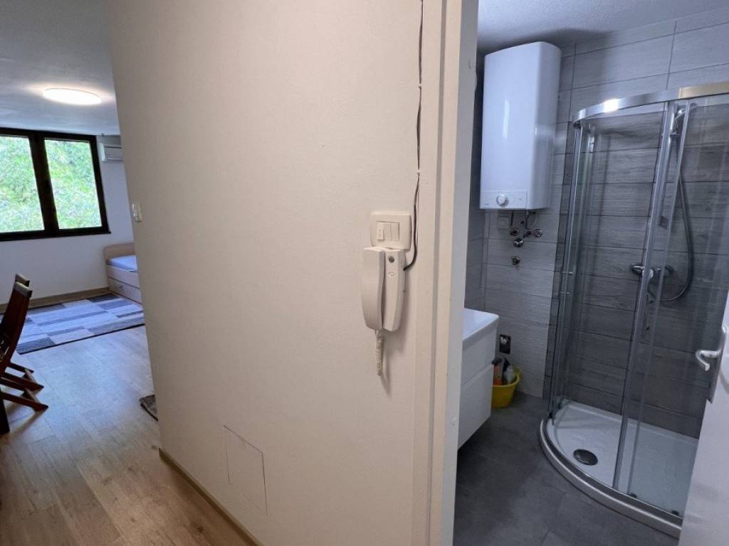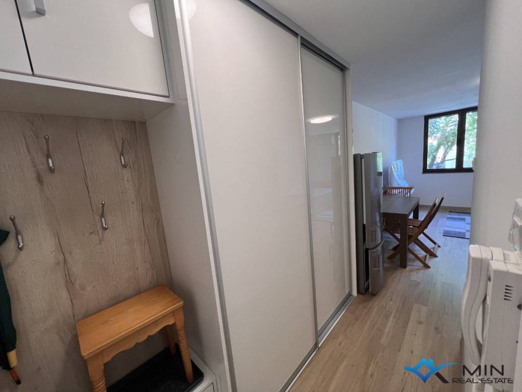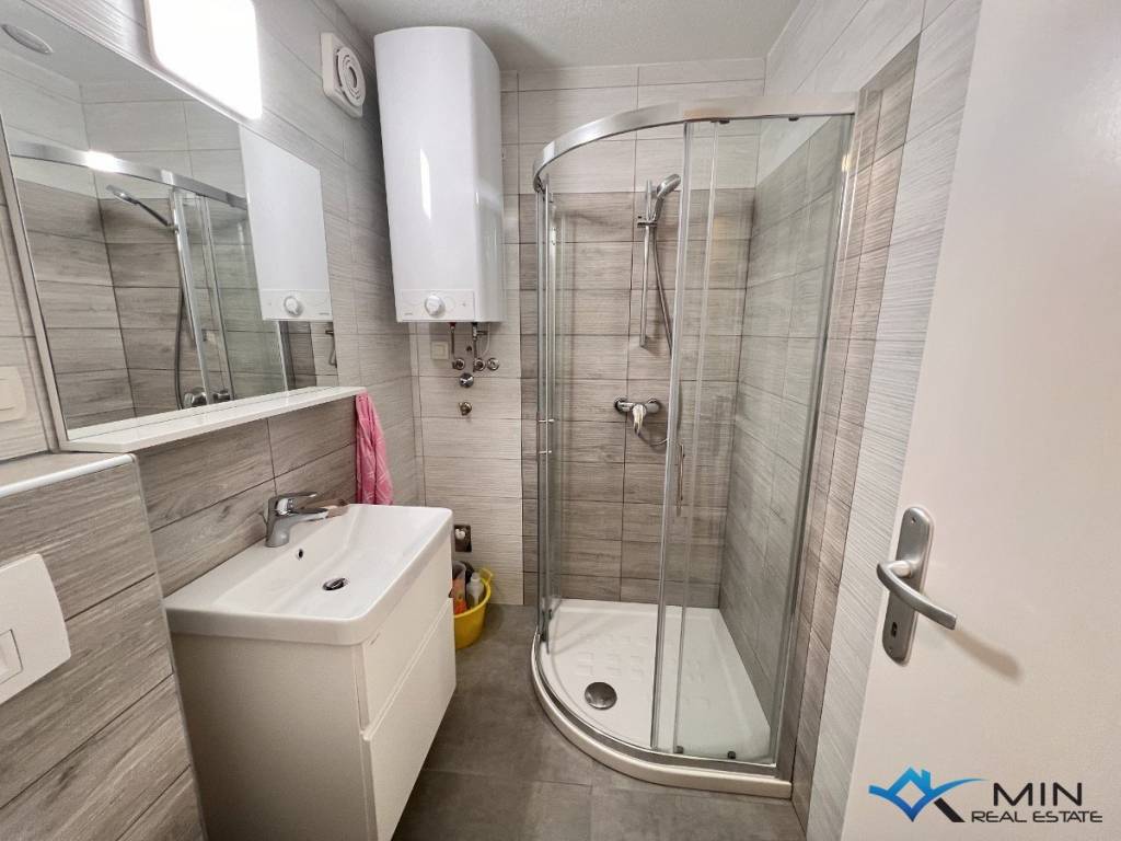 A nice studio apartment for sale in a great location in Novigrad, 250 m from the sea and a beautifully landscaped beach. The studio apartment is 25 m2 and consists of a hallway, a bathroom and a space with a kitchen, a table and 2 beds which can be extended for an additional 2 people. The studio apartment has a storage room on the ground floor of 2.80 m2 and the right to use a covered parking space and terrace.The apartment was completely renovated in 2022 and has aluminum windows. The apartment is sold fully furnished.