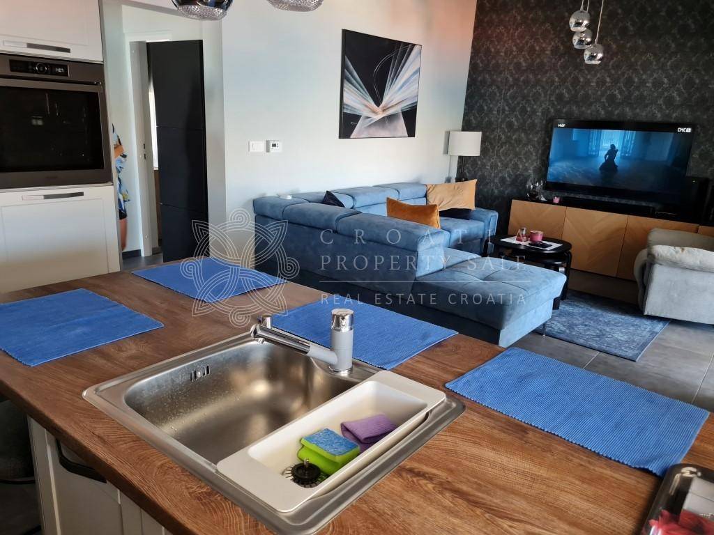Ground floor apartment is currently being reconstructed to mirror the upper floor apartment's elegance, promising an equally captivating experience. Finish of renovation of this apartment is schedulled to the autumn 2023. This apartment will be finished in same style and quality and equipment as first floor apartment, including underfloor heating, modern bathroom, modern kitchen, 2 bedrooms and spacious living room with exit to large terrace enjoying stunning sea views.