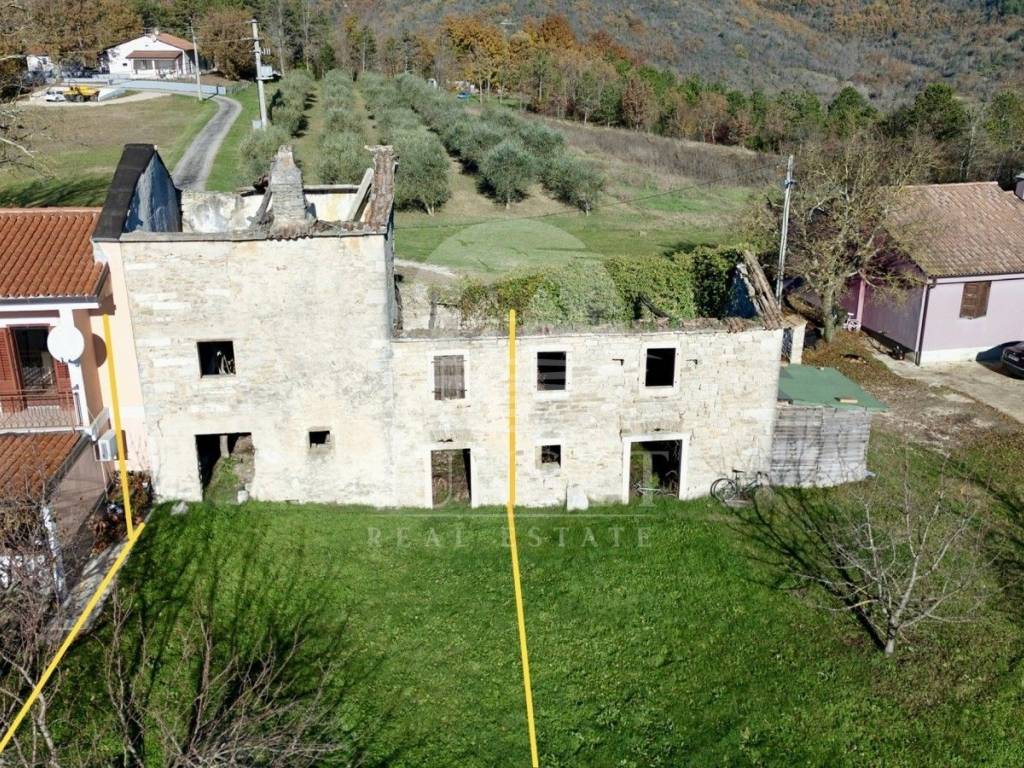 In vendita una casa a schiera in pietra con un annesso agricolo e terreno di proprietà con una superficie totale di 549 m, situata in un tranquillo quartiere. La casa necessita di una completa ristrutturazione.