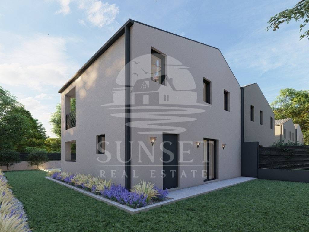 In vendita una moderna casa bifamiliare con piscina situata a Buje, disposta su due piani. La superficie totale della casa è di 120 m, mentre il terreno su cui si trova è di 330 m, con una piscina progettata di 18 m. Al piano terra si trova un ampio soggiorno con cucina e sala da pranzo open space, un WC per gli ospiti e un ripostiglio. Dal soggiorno si accede alla terrazza coperta di 10,76 m, dalla quale si accede al giardino ben curato con piscina, area prendisole e due posti auto. Le scale interne conducono al piano superiore, dove si trovano tre camere da letto, una delle quali è una master room con bagno privato, un ulteriore bagno e una terrazza.