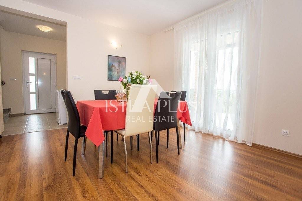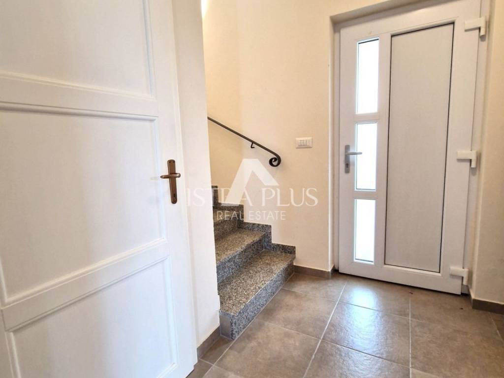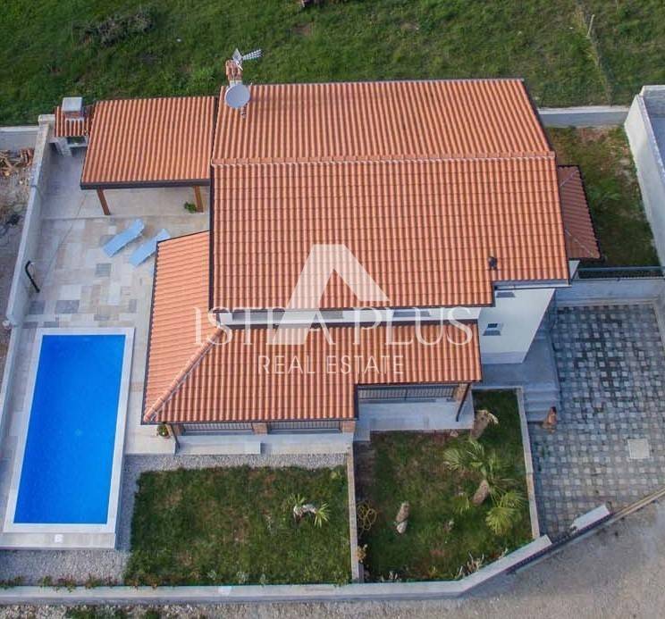 K16 In un luogo tranquillo con tutti i servizi necessari, a 500 metri e 7 km dalle prime spiagge, questa bella casa è in vendita, completamente arredata e attrezzata, con una superficie di 160 mq su due piani. Al piano terra della casa si trova un soggiorno con accesso alla terrazza coperta e alla piscina, cucina con sala da pranzo, wc. Al primo piano tre camere matrimoniali di cui una ha accesso ad un balcone con vista panoramica sul mare, un bagno nel corridoio. Piazzale di ca. 500 mq con piscina di 29 mq, terrazza estiva coperta con barbecue e 2 posti auto.