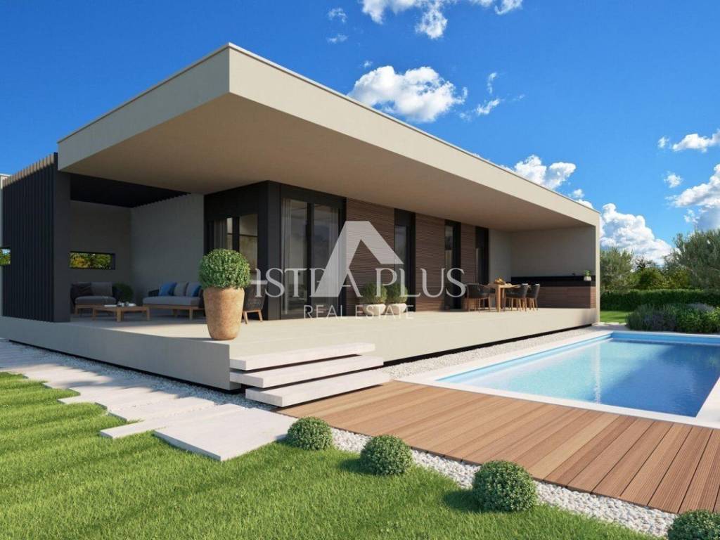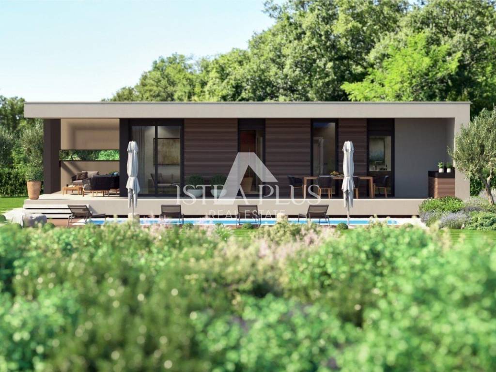 La combinazione di natura e architettura moderna è il risultato di questa bellissima nuova costruzione: casa a un piano.