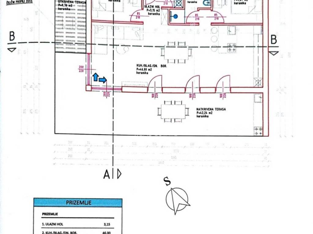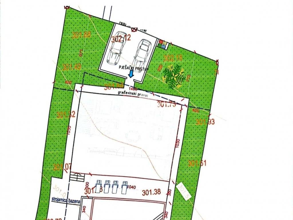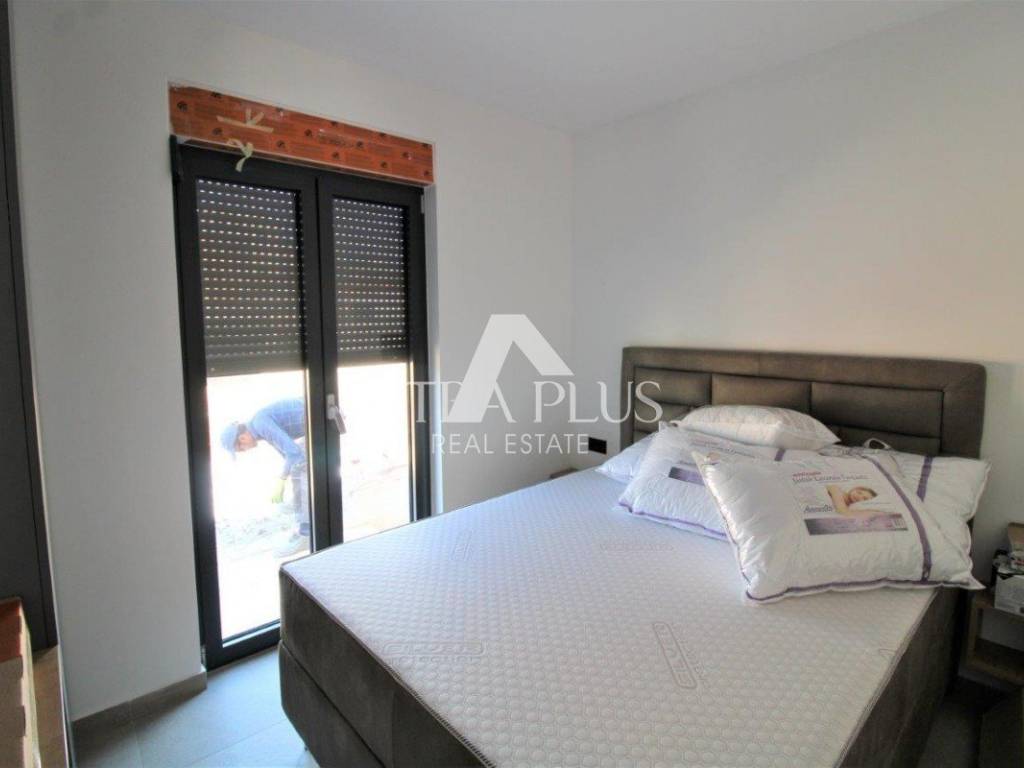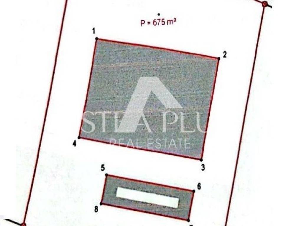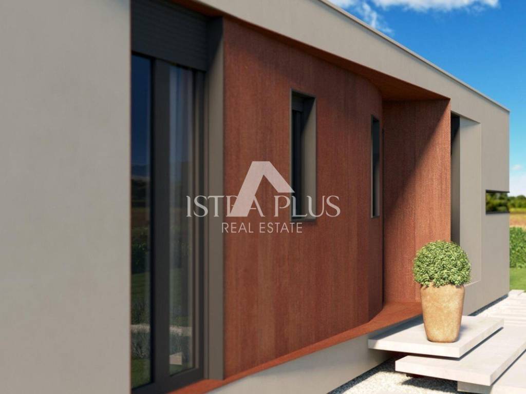 Si trova su un terreno recintato di 675 m2. Il cortile è decorato con una recinzione verde e parte del prato con ulivi.