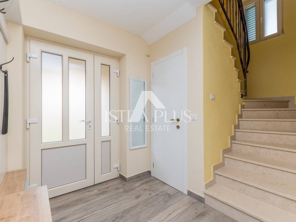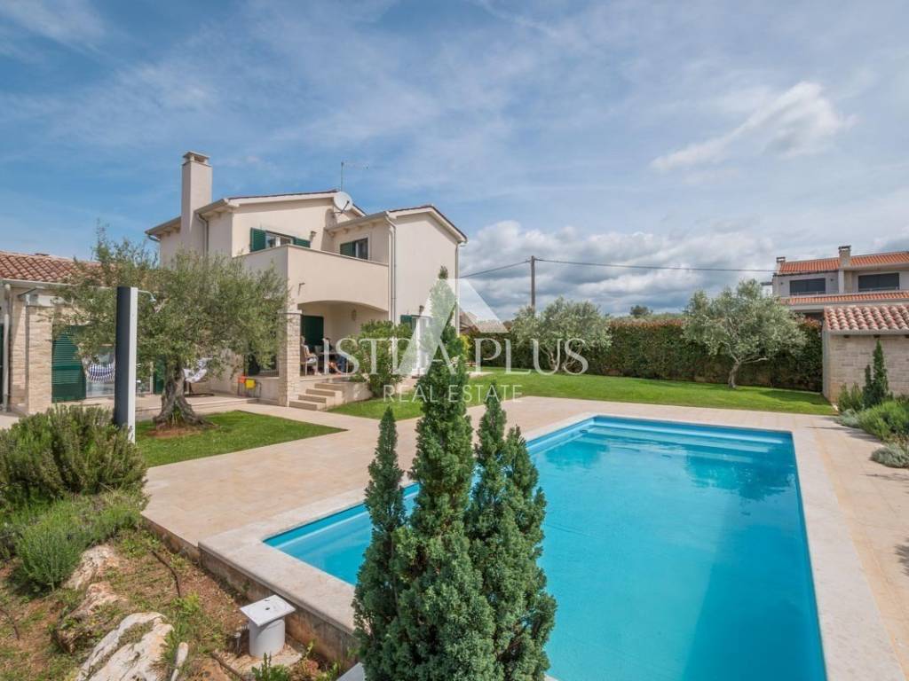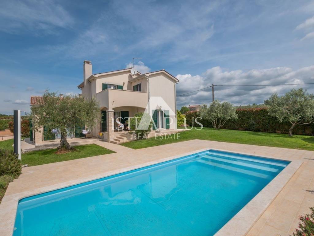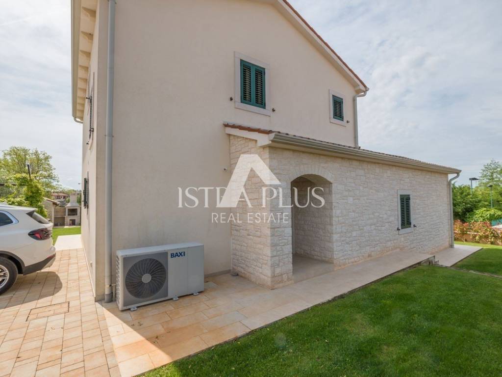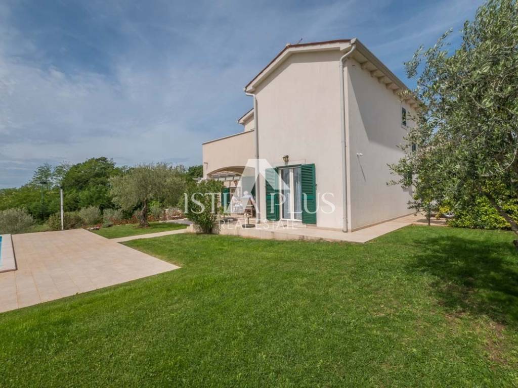 K234 Una bella casa con piscina e vista sui vigneti è la casa ideale per le vacanze o la residenza permanente. Si trova in una zona tranquilla a soli 14 km da Parenzo e dalle spiagge. Entrando in casa, si viene accolti da un ampio corridoio con ripostiglio e un bagno per gli ospiti, dal quale si accede ad una cucina e sala da pranzo elegantemente arredate con accesso ad una terrazza coperta. Il soggiorno è spazioso e confortevole, ideale per rilassarsi o trascorrere del tempo con la famiglia e gli amici. C'è anche una camera da letto con il proprio bagno al piano terra. Al piano superiore ci sono altre due ampie camere da letto, ciascuna con il proprio bagno e accesso al terrazzo. La casa dispone di riscaldamento centralizzato con pompa di calore e raffreddamento centralizzato per giornate estive più piacevoli. Nel cortile c'è una piscina di 27 m2, casetta da giardino, barbecue, impianto di irrigazione automatico del giardino. Il terreno è completamente recintato, il che garantisce un ulteriore senso di privacy e sicurezza. La villa è dotata di videosorveglianza. La casa viene venduta arredata. Questa casa rappresenta una soluzione ideale alla questione abitativa o come investimento ai fini della locazione turistica.