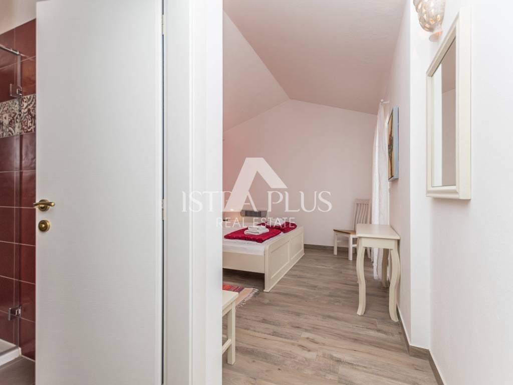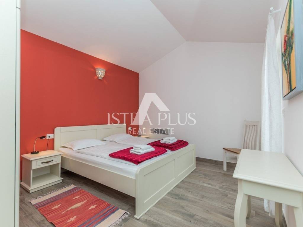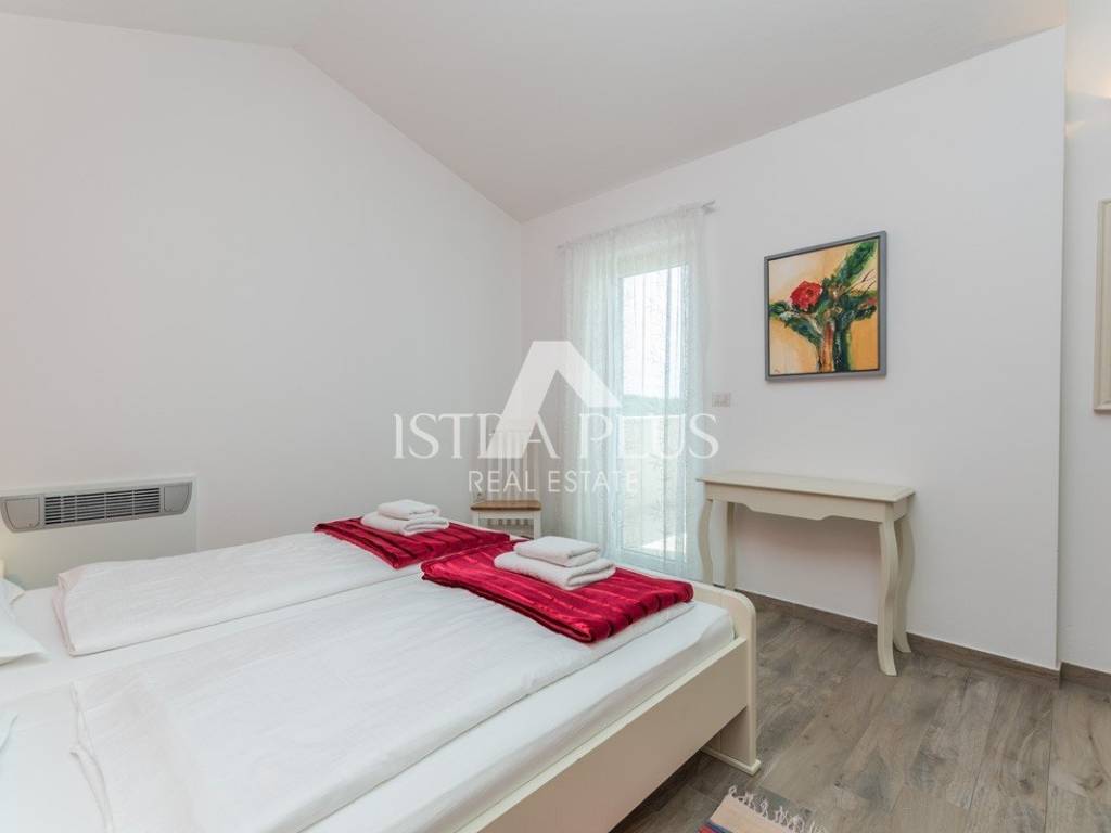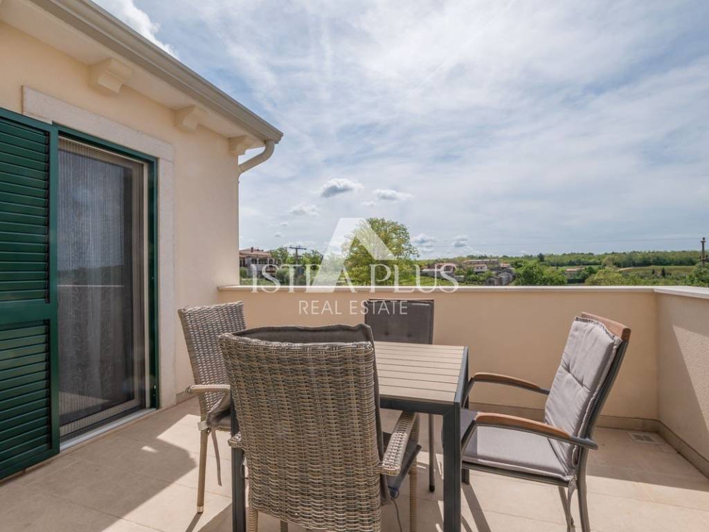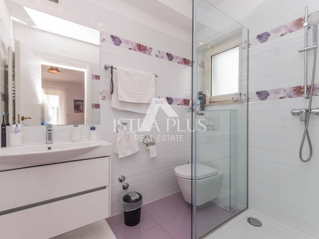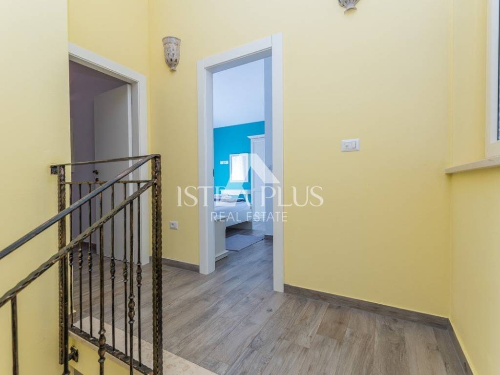 K234 Una bella casa con piscina e vista sui vigneti è la casa ideale per le vacanze o la residenza permanente. Si trova in una zona tranquilla a soli 14 km da Parenzo e dalle spiagge. Entrando in casa, si viene accolti da un ampio corridoio con ripostiglio e un bagno per gli ospiti, dal quale si accede ad una cucina e sala da pranzo elegantemente arredate con accesso ad una terrazza coperta. Il soggiorno è spazioso e confortevole, ideale per rilassarsi o trascorrere del tempo con la famiglia e gli amici. C'è anche una camera da letto con il proprio bagno al piano terra. Al piano superiore ci sono altre due ampie camere da letto, ciascuna con il proprio bagno e accesso al terrazzo. La casa dispone di riscaldamento centralizzato con pompa di calore e raffreddamento centralizzato per giornate estive più piacevoli. Nel cortile c'è una piscina di 27 m2, casetta da giardino, barbecue, impianto di irrigazione automatico del giardino. Il terreno è completamente recintato, il che garantisce un ulteriore senso di privacy e sicurezza. La villa è dotata di videosorveglianza. La casa viene venduta arredata. Questa casa rappresenta una soluzione ideale alla questione abitativa o come investimento ai fini della locazione turistica.