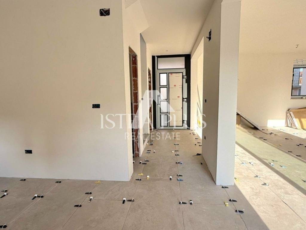 TAR-VABRIGA Bella e moderna costruzione di nuova costruzione - Appartamento su due piani con piscina di 24 mq Il piano terra della casa è composto da ingresso, cucina con sala da pranzo e soggiorno, wc, ripostiglio e terrazzo. Al primo piano ci sono tre camere da letto, ciascuna con il proprio bagno e terrazzo. Nel cortile si trova la piscina di 24 mq con zona solarium, giardino e due posti auto.