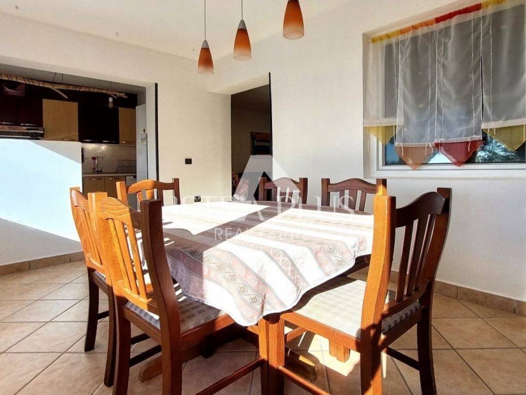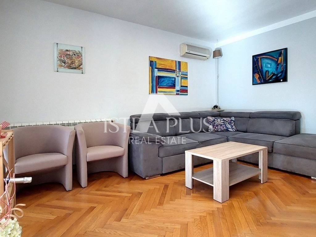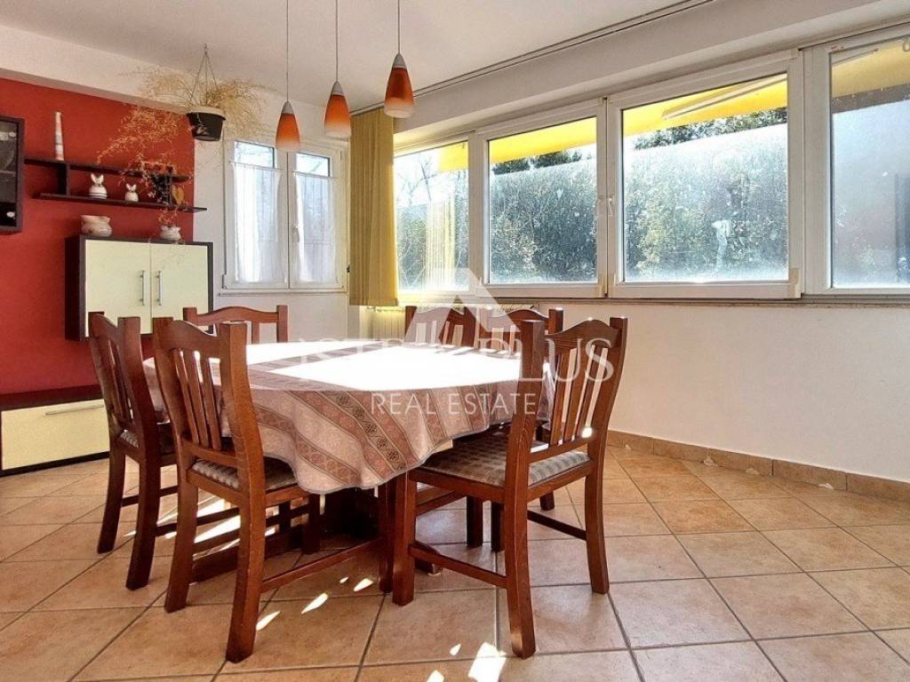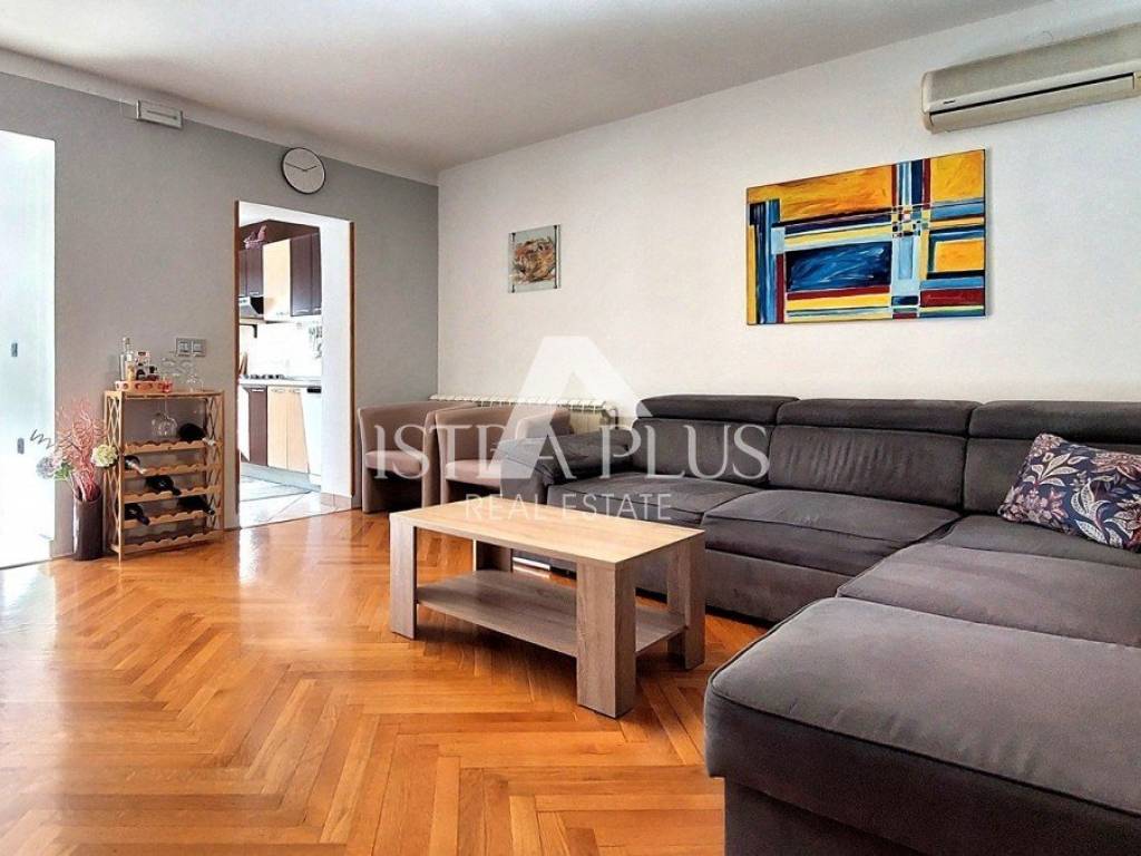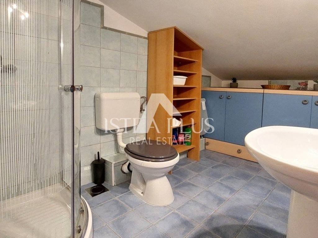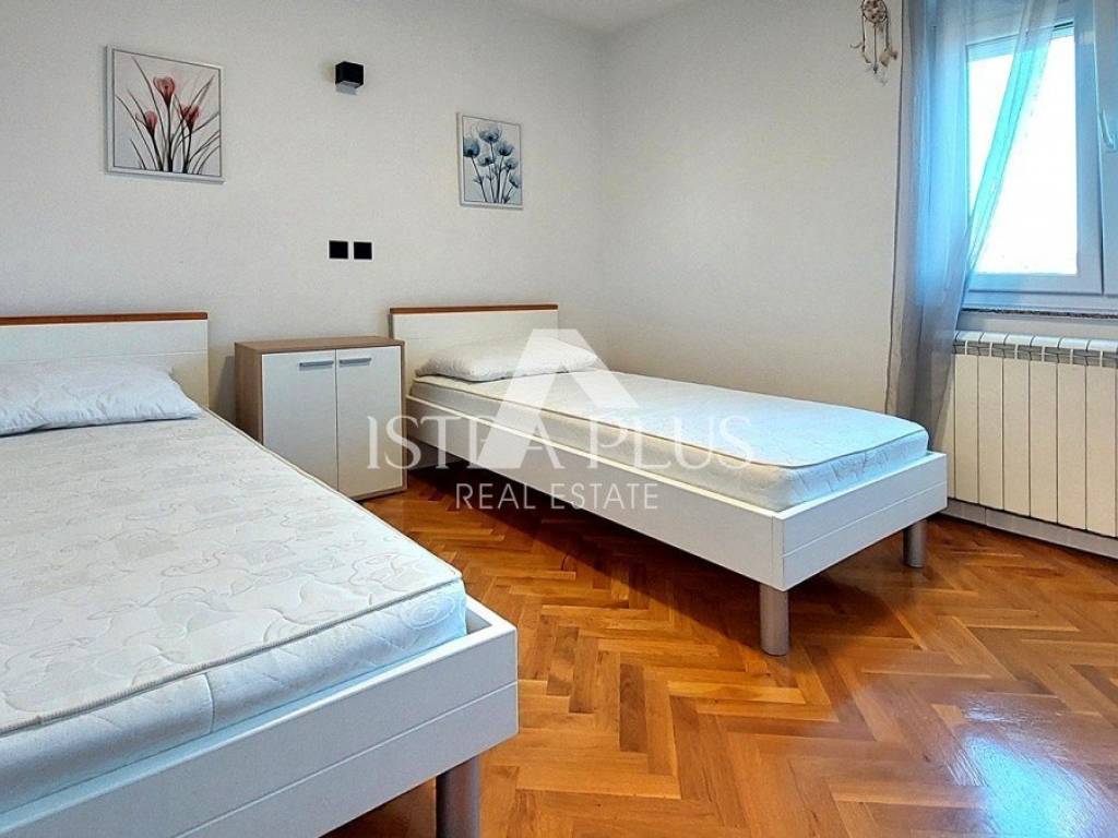 L'appartamento è stato ristrutturato nel 2010, viene venduto arredato, ha la vista mare, infissi in PVC con oscuranti e zanzariere, riscaldamento autonomo a gas e 3 condizionatori. L'appartamento dispone di due posti auto davanti all'edificio e di un giardino di 74 mq. L'appartamento dista circa 4 km dal centro di Parenzo e dal mare, circa 2 km dal centro commerciale.