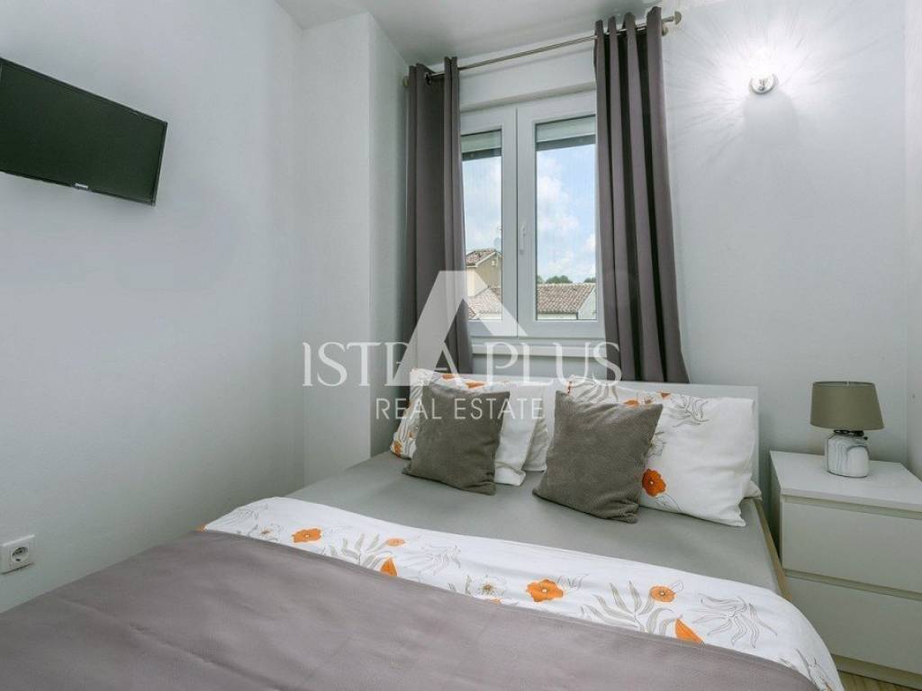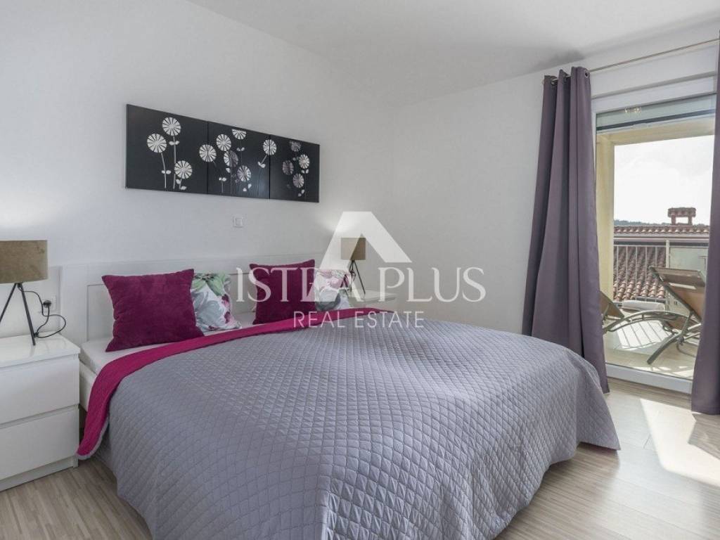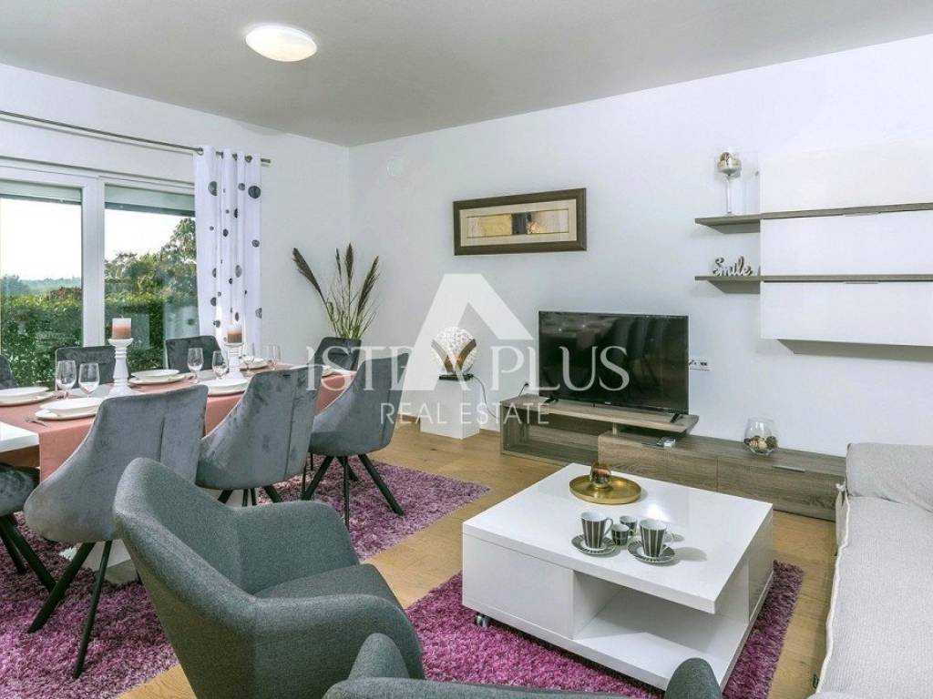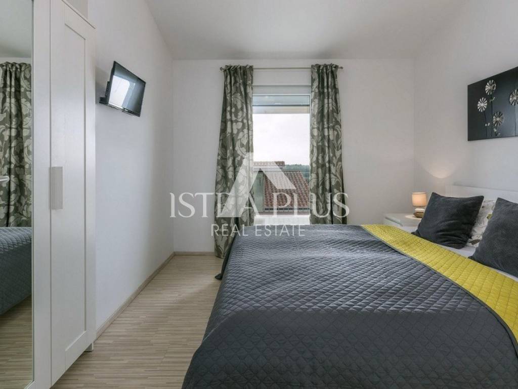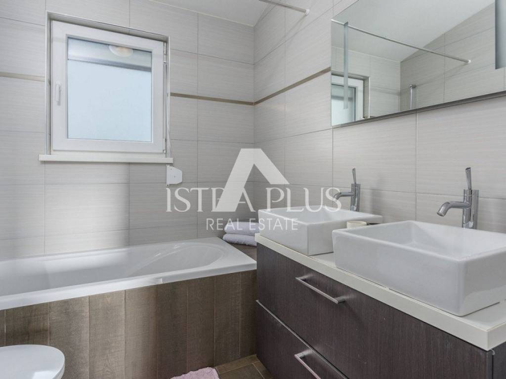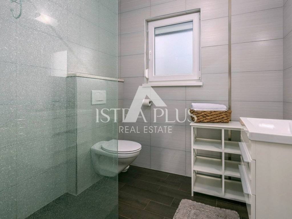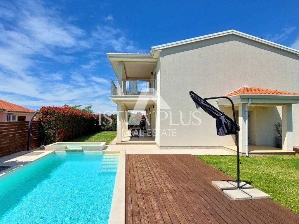 casa indipendente di 134 m composta da soggiorno, cucina, sala da pranzo, terrazzo coperto, disimpegno, una camera da letto, bagno e ripostiglio al piano terra e da disimpegno, tre camere da letto, bagno e terrazzo al primo piano.La casa è stata costruita nel 2016 su un terreno di 592 m, viene venduta completamente arredata, dispone di piscina, predisposizione per il riscaldamento centralizzato, 4 condizionatori e due posti auto. La casa dista 8 km da Poreč-Parenzo e dal mare.
