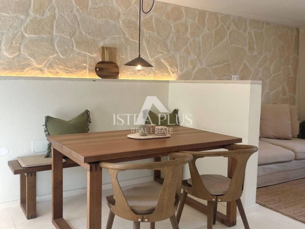 Qui troverete un appartamento spazioso con terrazza coperta e vista spettacolare sul mare e sul paesaggio circostante. L'interno comprende un'ampia sala da pranzo con camino, una cucina in muratura, un soggiorno, due camere da letto, un bagno moderno e un bagno per gli ospiti, il tutto arredato con stile per il massimo comfort.