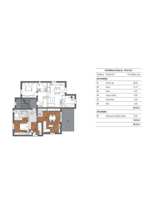 The total usable area is 80.25 m, with a calculated floor area of 72.32 m.