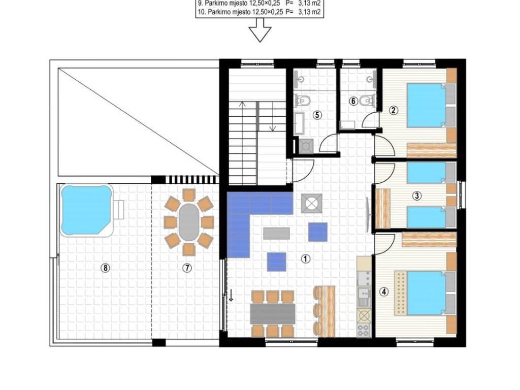 The micro-location is peaceful and highly attractive, surrounded by smaller family houses, while the beach is only a few minutes walk away (approx.