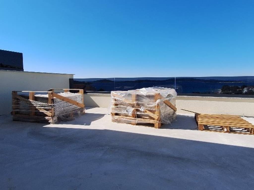 Penthouse for sale – Žaborić with a beautiful view of the sea Location: Žaborić, 200 m from the sea Apartment area: 118.10 m Terrace area: 47.40 m For sale is a luxury penthouse near Žaborić, a small Dalmatian town located near the sea.