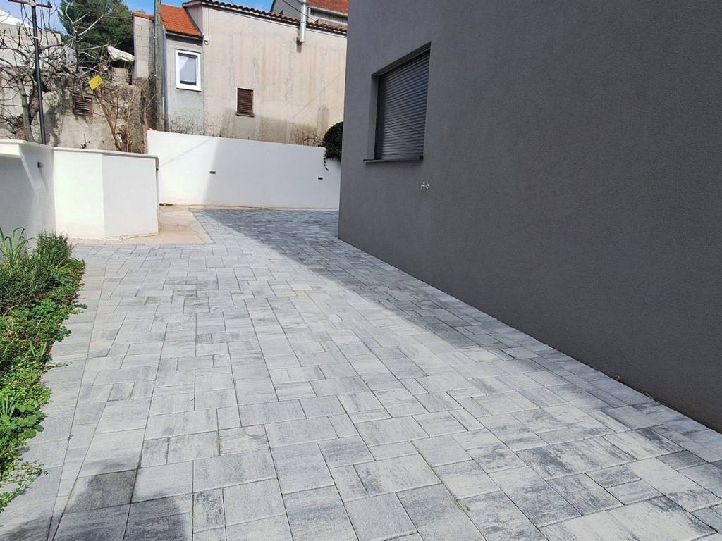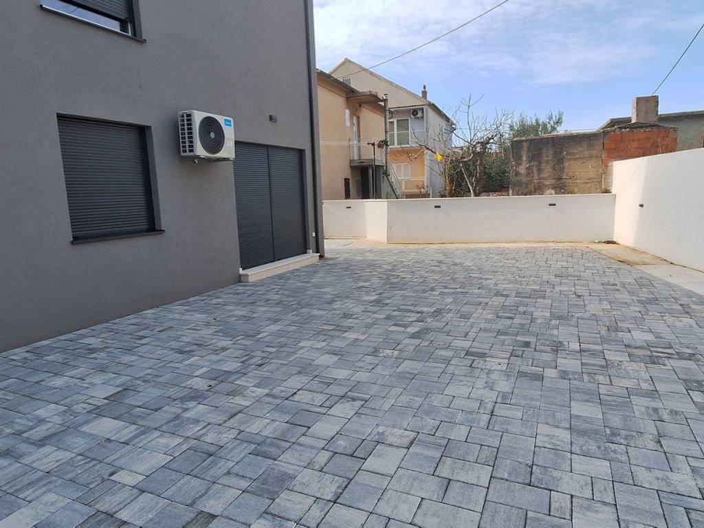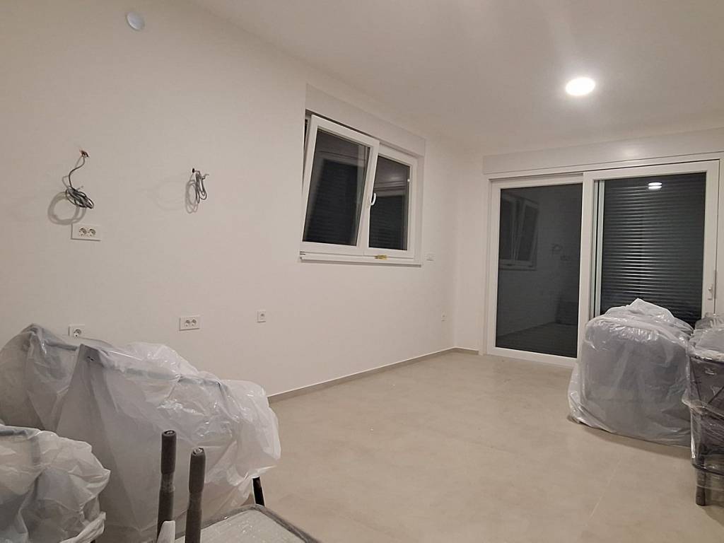 Apartment area: 59.94 m Yard: 153.12 m Room layout: Two bedrooms Storeroom Bathroom Additional toilet Kitchen, dining room and living room with access to the yard Parking: Secured parking space Quality of construction and equipment: Security: HLM entrance security and fire doors (light oak) and JAVOR-Bjelovar interior doors (white matt, drywall with magnetic lock) Exterior joinery: GELANA PVC joinery with insulated glass, ALU roller shutters with electric lift and mosquito nets Technical equipment: Video intercom and antenna system Heating and air conditioning: Underfloor heating in the bathroom, GREE or MIDEA air conditioning with Wi-Fi (three indoor units) Electrical installations: TEM modular sockets and switches, LED lighting Flooring: 60×120 mm ceramic tiles and 12 mm thick laminate in the rooms, ceramics in bathrooms Bathroom: WC with built-in GROHE cistern, VOXORT bathroom block, shower with side glass panel, washing machine, ARISTON 80L boiler, Hansgrohe taps Internal walls: Plastered with ROFIX system, smoothed and painted Terrace: Enclosed with tempered glass railing (2×8 mm) Additional infrastructure: Chimney for solid fuel stove, staircase smoke extraction system with sensor Connections: Connection to sewage, water and electricity with meter Facade: 8 cm polystyrene, ROFIX system Additional information: Modern construction and design Quiet location, ideal for family life First row to the sea The buyer is exempt from paying real estate transfer tax This apartment is the perfect choice for those who want to enjoy a high standard of living by the coast, whether it is family life or relaxation.