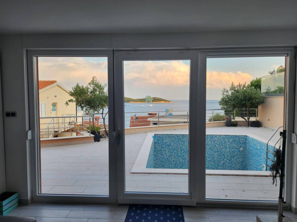 Additional Features: Pool with a spacious sunbathing area Large terrace with an outdoor dining space Immediate proximity to the crystal-clear sea Permanently unobstructed sea view perfect for enjoying sunsets Privacy and tranquility, yet close to Trogir and all amenities High-quality construction and modern design This luxurious villa presents a unique opportunity for a prestigious seaside lifestyle or as an excellent investment for rental purposes.