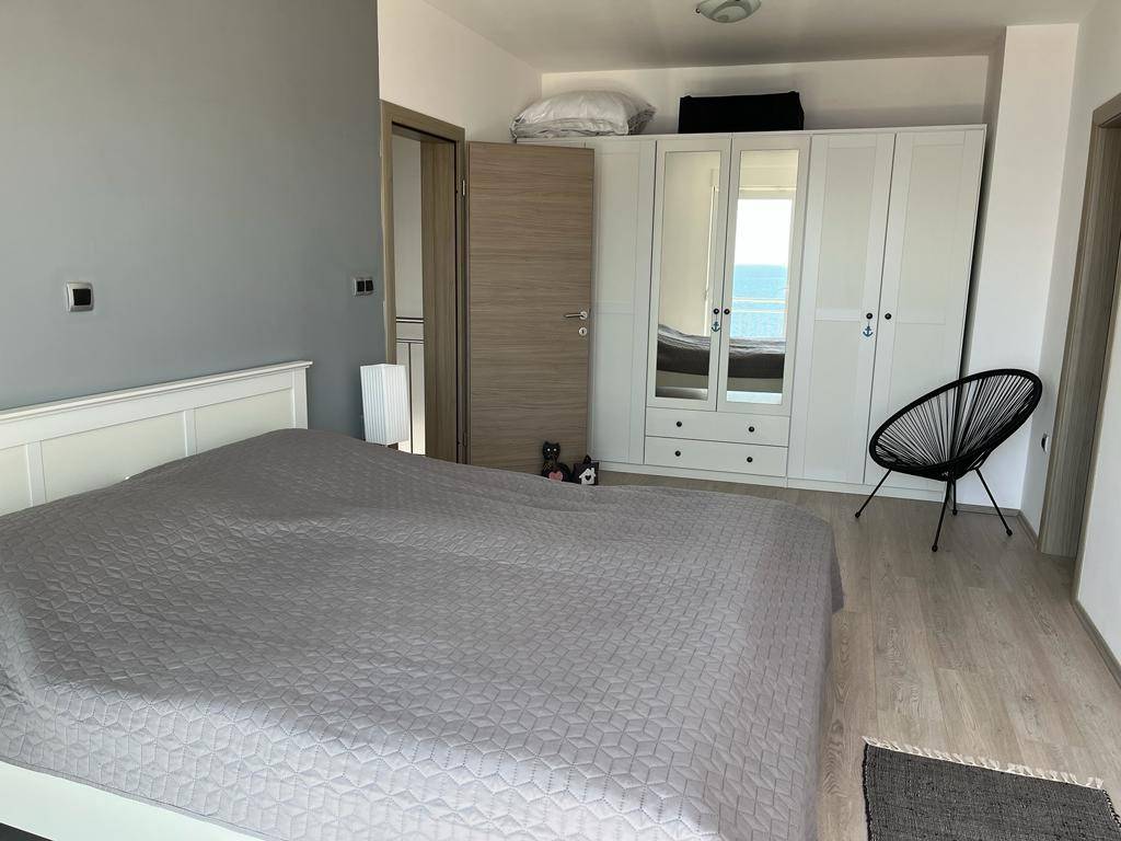 On the upper floor, there are three elegant bedrooms, with the master bedroom featuring access to a private balcony with an unforgettable, unobstructed sea view.